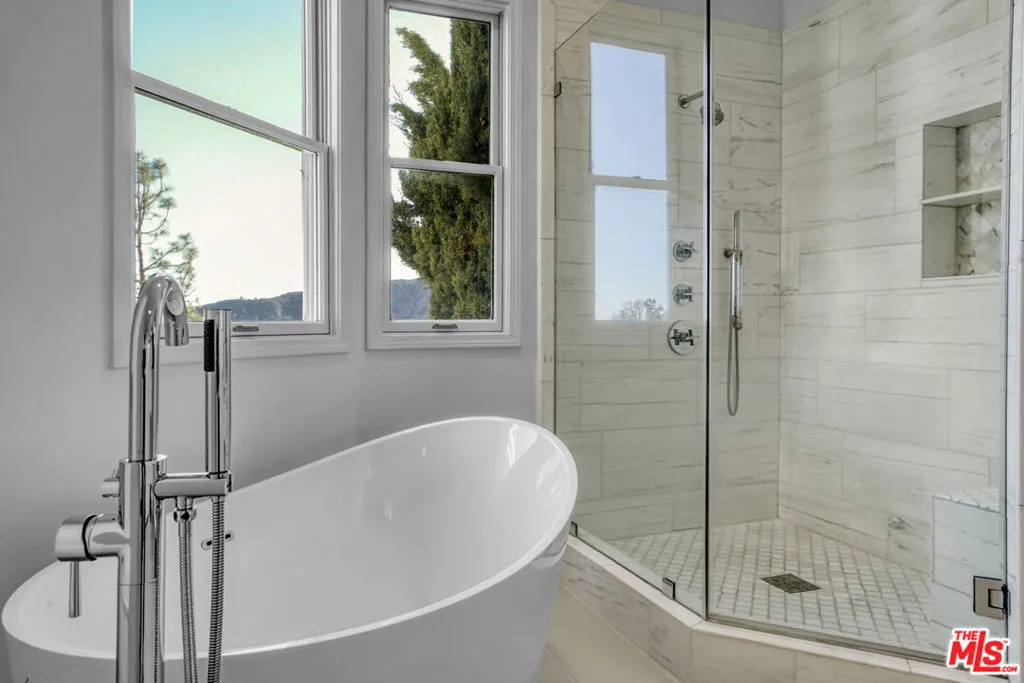 Located in the prestigious Vista Catalina complex, this expansive upgraded condo offers the perfect blend of luxury and privacy, with the feel of a modern single-family home. Designed for effortless single-level living, the open floor plan showcases breathtaking mountain, canyon, and distant ocean views. The location of this unit is one of the best in the complex, positioned at the end of a private road with no property to the left and unobstructed views / access to the private association park. Newly installed hardwood floors and remodeled bathrooms add a touch of modern sophistication throughout. The spacious living room, complete with a cozy fireplace, seamlessly connects to a large covered patio, an ideal spot to soak in the stunning scenery. The primary suite features its own fireplace, a private balcony, a beautifully renovated bathroom with a soaking tub, and an oversized walk-in closet. The generous third bedroom, perfect as an office or guest suite, overlooks the serene courtyard and includes a walk-in closet. An additional large bedroom offers the convenience of its own en-suite bathroom. This home also boasts a formal dining room, a well-appointed kitchen with stainless steel appliances and a charming breakfast nook, plus a separate laundry room. Outside, a peaceful yard area awaits, complete with water-friendly landscaping, a rock pathway, and a private BBQ space. Residents enjoy exclusive access to a sparkling pool, relaxing spa, and ample guest parking. While the main living area is on one level, an exterior staircase leads to the front entrance, and the attached garage features an interior staircase leading down to the main floor. Don't miss this rare opportunity in a highly sought-after Pacific Palisades complex that hardly ever has homes on the market. Also available for rent - Contact listing agent for more details.