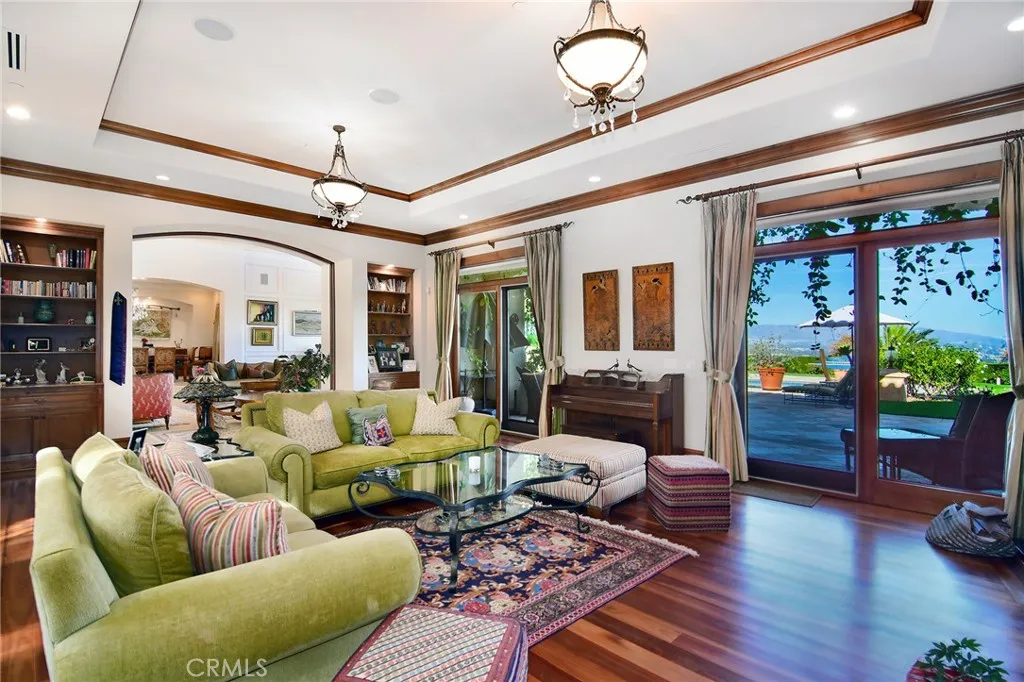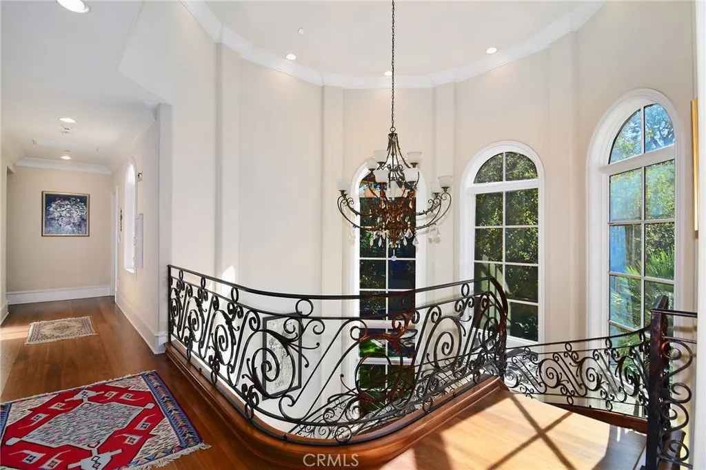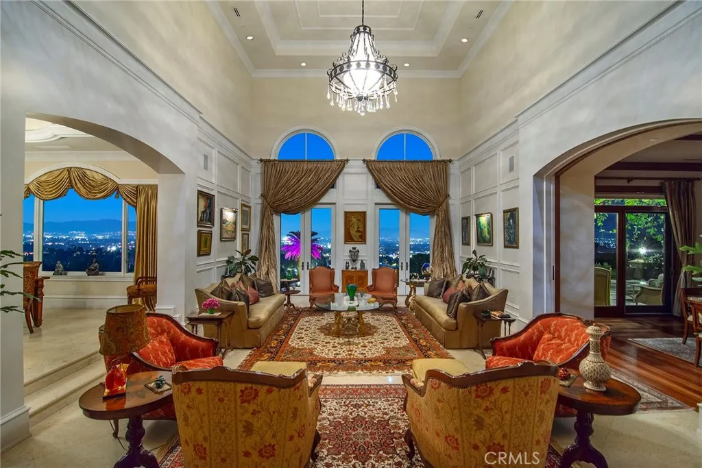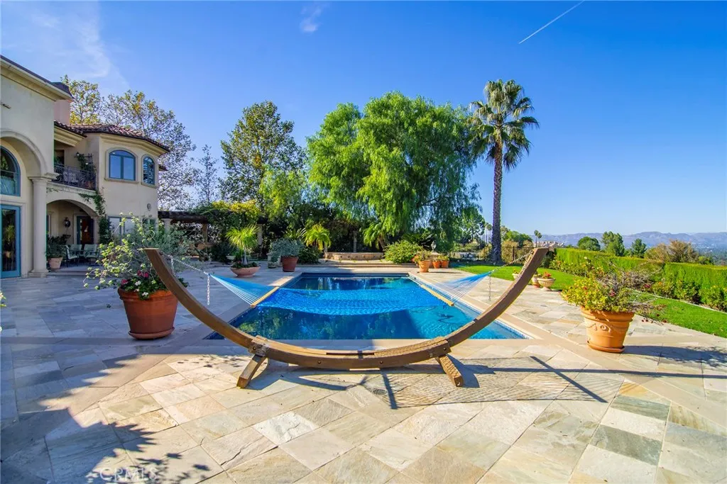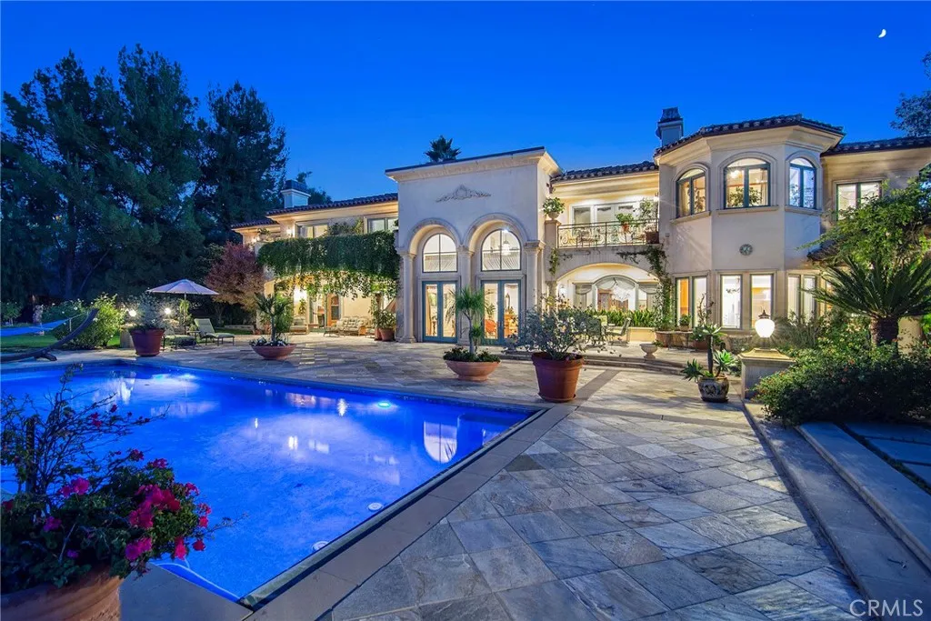 Presenting a magnificent custom Tuscan nestled “South of Blvd” within the tranquil hills of Tarzana. Spellbinding views from the rocky Santa Susana mountains in the northwest corner of the Valley spanning clear across to the east while capturing hypnotic visions of glistening lights, majestic mountains and all the daytime dazzle of the Valley below. Gated entrance at the end of a quiet cul-de-sac leads to this ultra-private nearly 8,400 sq. ft. estate on 1.5 acres designed and crafted by these original owners. Beautiful arches and grand columns entice you to explore more. Inside, a living room with 20 ft. soaring ceilings, family room with fireplace and spacious formal dining all offer large windows to ensure the glorious views are always right by your side. Open & bright kitchen features a large center-island & adjacent breakfast nook with plenty of windows to enable you to devour the sumptuous sites with each and ever meal. Large office, game-room and ensuite further enhance the lower level. Choose the grand curved staircase or the stairs adjoining the kitchen to guide you to the upper level or…if stairs are a strain, an elevator is at your service affording the opportunity to remain for a lifetime. Your double-door entry primary suite provides three prime vantage points to soak in the sights….cozy adjoining reading/relaxation arena, large private balcony and from the comfort of your bed as the last thing you see each night and the first as you arise. Spacious luxurious bath and a massive walk-in closet add to its appeal. Three additional ensuites with balconies and an upper-level family room option are ideal. Outside, these palatial rear grounds offer a sensational sanctuary to indulge in a true southern California lifestyle. With the jaw-dropping panoramic backdrop visible form virtually every inch, the experience is like no other. Enjoy a solar heated pool, soothing spa, barbeque center/dining area and a sprawling grassy area. This is one not to be missed!