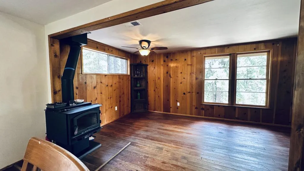 Step into classic mountain charm with this delightful 3-bedroom, 1.5-bath home, nestled on two spacious lots totaling 0.29 acres! Built in 1951, this cozy retreat offers 1,160 sq ft of bright, welcoming living space. Enjoy the warmth of original fir floors, tongue and groove walls in the living room, and sunlight streaming through every window. Gather around the free-standing wood-burning stove on cool evenings, or unwind on the expansive deck with breathtaking views of Marion Mountain--perfect for morning coffee or sunset gatherings. With ceiling fans for comfort, a handy laundry room, and a separate workshop, this home is designed for easy living and creative pursuits. Whether you're looking for a peaceful getaway or a full-time haven, you'll love the blend of vintage character and joyful mountain living this property offers!