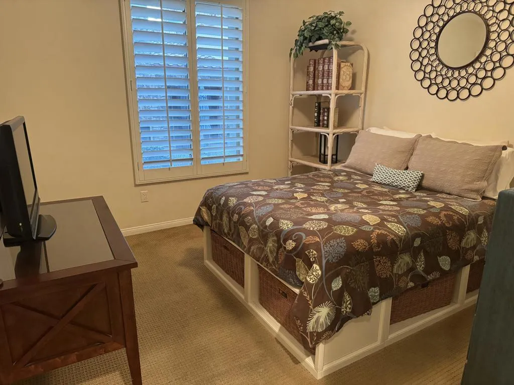 Available Short or Long term! Beautiful Brava condo located at the back of the community, away from street noise, offering peaceful southern exposure and scenic mountain views. Enjoy the inviting master bedroom balcony complete with a cozy fireplace--perfect for relaxing evenings. This home is offered turnkey furnished with stylish, high-quality decor.The floor plan features two spacious upstairs master suites, each with walk-in closets, plus a third bedroom downstairs that can function as an office, den, or study. Additional features include plantation shutters, ceiling fans, and a chef's kitchen with stainless steel appliances, granite countertops, a walk-in pantry, and a large island with breakfast bar.One of the two community pools and spas is conveniently located just down the street, and residents also enjoy access to the on-site fitness center with TV. The gated Brava community is known for its desirable amenities and unbeatable location--directly across from Bristol Farms, Sherman's Deli, and more, with easy freeway access and close proximity to Eisenhower Medical Center.Available short-term or long-term.Also available as a vacation rental: $5,000.A must-see--this home will not disappoint!