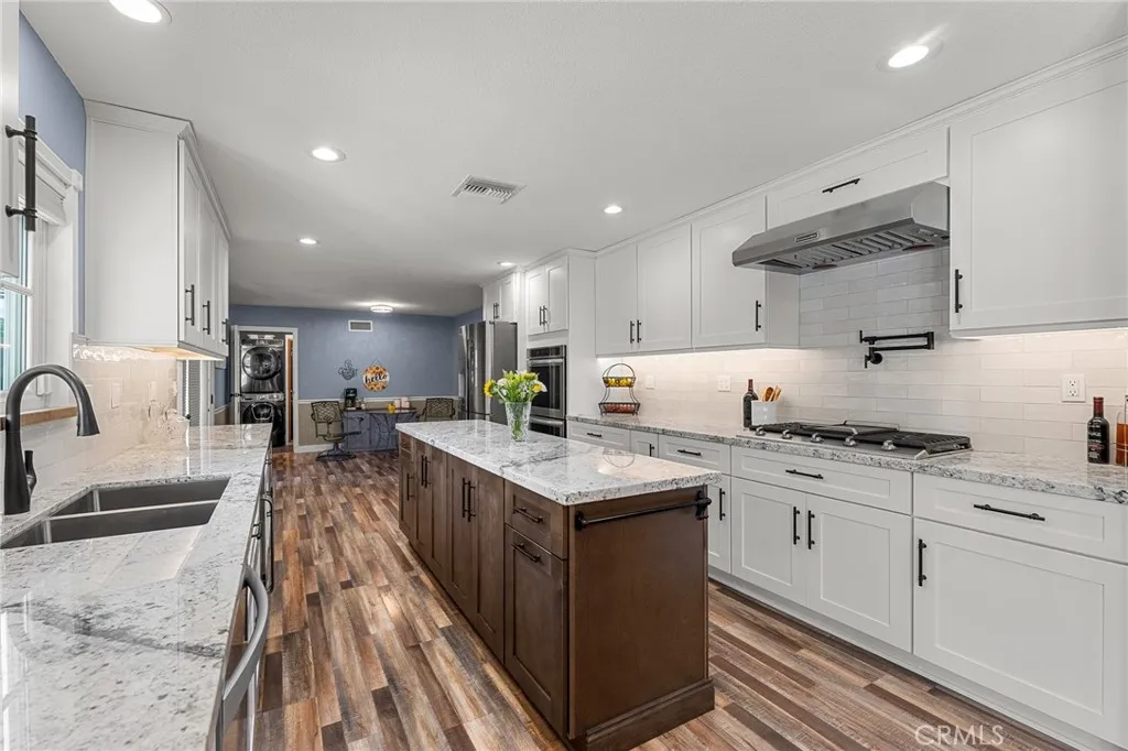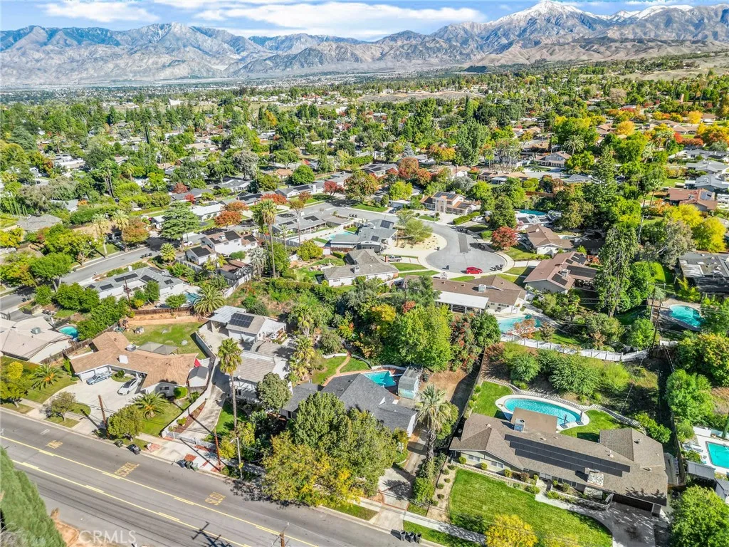 Welcome to this move-in ready Colonial-style pool home located in the highly desirable Upper South Redlands neighborhood, just walking distance to Redlands Country Club and Prospect Park. Set on a rare .34-acre lot, this 5-bedroom, 3-bathroom home offers mountain views, city light views, and a private resort-style backyard—perfect for entertaining or relaxing in total privacy. The expansive backyard oasis features a 28,000-gallon swimming pool with upgraded VFD pump, diving board, multiple lounge areas, and an elevated fire pit ideal for sunset and stargazing evenings. Mature landscaping provides peaceful greenery, while the property is enhanced by a brick entry, paved driveways, a 12-foot automatic gated entrance with battery backup, and a mix of wrought iron, vinyl, and wood fencing. Inside, enjoy 2,208 sq ft of beautifully remodeled living space with five spacious bedrooms, including a main-level primary suite, and three updated bathrooms. This home features newer dual-pane windows, plantation shutters, custom casing and molding, fresh interior paint, and 100% waterproof and fireproof luxury vinyl plank flooring throughout. The chef’s kitchen is a true showstopper with soft-close shaker cabinetry, high-end granite countertops, subway tile backsplash, LED lighting, and premium stainless steel appliances. Highlights include a 5-burner high-heat cooktop with 50,000 BTU super-burner, double convection ovens, oversized microwave, pot filler, wine refrigerator, dishwasher, and Bluetooth-enabled features—perfect for home chefs and entertainers alike. Additional living spaces include a formal living room with wood-burning fireplace, spacious family room, formal dining area, and a breakfast nook with dual French doors opening to the backyard for seamless indoor-outdoor living. Major system upgrades include a new 30-year roof with solar conduit pathway, gigabit high-speed internet, new smart water meter, upgraded main water line and regulator, and expanded electrical panels with future capacity. The 503 sq ft oversized 2-car garage/workshop offers exceptional utility with three 220V/50A outlets and five 20A circuits, making it ideal for EV charging, RV hookups, or a home workshop. This no HOA, centrally located Redlands home offers privacy, space, upgrades, and location—a rare combination in today’s market. Don’t miss this exceptional opportunity to own one of Redlands’ most sought-after homes.