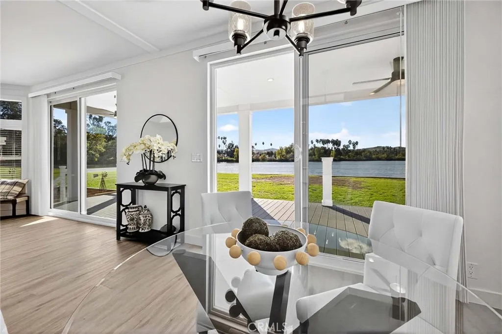 Experience lakeside living at its finest in the serene 55+ community of Lake Los Serranos-where every day feels like a vacation. Enjoy peaceful mornings on the oversized porch overlooking the water. This bright and open floor plan offers an abundance of natural light from skylights and large windows throughout the home. The chef-ready kitchen features a quartz island, stainless steel appliances, and a walk-in pantry. The generous primary suite includes a walk-in closet, dual vanities, and a walk-in shower. Two additional guest bedrooms and a utility room with side-by-side laundry hookups provide extra comfort and convenience. Additional highlights include a covered carport with easy parking and access to active community amenities such as a pool, spa, and scenic walking paths.