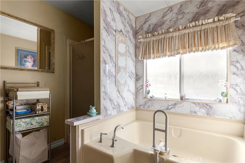 Beautiful Home in the Highly Desirable 55+ Rancho Ontario Community! This spacious 2-bedroom, 2-bath manufactured home offers approximately 1,248 sq. ft. of comfortable, well-designed living space in one of Ontario’s most sought-after senior communities. The inviting open layout features large windows that fill the home with natural light. The kitchen includes abundant cabinet storage, a breakfast bar, new kitchen cabinets and lighting, and updated appliances that will stay with the home. It flows seamlessly into the dining area and on to the living room, creating a cohesive space ideal for everyday living. A generous laundry room with an office-style setup provides excellent additional workspace or storage. The primary suite includes a spacious bedroom and an ensuite bathroom with a garden tub and separate stand-up shower. The secondary bedroom is also generously sized and freshly painted. Additional upgrades include an updated roof, updated flooring, and refreshed interior finishes. Outside, the covered carport accommodates multiple vehicles, the enclosed porch offers a perfect place to relax year-round, and a large storage shed provides even more space for tools, hobbies, or seasonal items. Rancho Ontario is known for its beautifully maintained grounds and resort-style amenities, including a heated pool and spa (open year-round), a clubhouse with event hall, billiards room, card room, fitness center, gym, and lounge area. The community also features two pickleball courts, bocce ball courts, and two dog parks for your furry companions. Don’t miss the opportunity to own a well-maintained home in this vibrant, amenity-rich 55+ community. This one truly has it all!