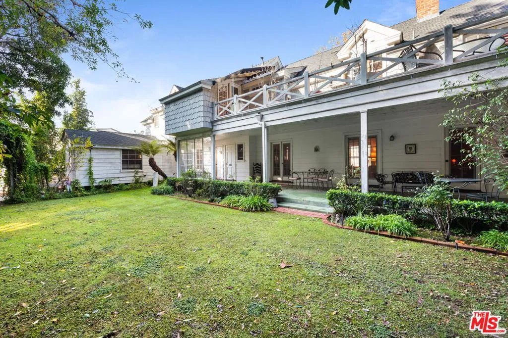 Sunset Boulevard's much admired Sycamore Bend is now available for purchase for the first time in over sixty-three years. Shingle-clad and built originally in 1941, its infinitely charming traditional architectural elements have been lovingly cared for and carefully preserved over the years. Impressively set back from the street up a gentle, grassy knoll and framed by a majestic Sycamore, this wonderful home is surrounded by full mature landscaping and accessed easily by a convenient circular driveway. A welcoming formal foyer leads to the sunny living room with its crown, dentil moldings, stately fireplace, bay window and French doors leading out to the backyard. Peg-and-groove hardwood floors grace much of the first floor. The charming den, with its beamed ceilings, brick fireplace and built-in cabinets also has a wet-bar with a soda fountain. It also leads out to the backyard. The formal dining room, with its wainscoting, crown moldings and bay window has room for two tables. The country kitchen has wood paneled cabinetry, some with glass-faced doors, original period hinges, wood beamed ceiling, stainless steel appliances and a very sweet breakfast nook. A very cozy, yet spacious, downstairs ensuite bedroom has beamed ceilings, paneled walls and its own bath. A service area/laundry room and a powder bath complete the first floor. A lovely staircase leads to the upstairs landing and to three terrific bedrooms. The primary, with its tall pitched and beamed ceilings, has a romantic fireplace, a large bath with a separate tub and shower and an unusual amount of closet space for its vintage. It also has a very nice sitting room, perfect as an office, small gym or even as a nursery. The upper terrace, taking in peaceful views of the backyard, can be accessed from here. Two additional, cheerful, amply-sized family bedrooms share a full bath. The peaceful backyard is maturely wooded and has a large, covered porch for easy al fresco entertaining. There's also a wide expanse of grass for kids to play upon. Added much later but in careful keeping with the style of the main house, a guest house also graces this special property. It features a full kitchen with a breakfast bar, laundry facilities and a very comfortable living area with tall, pitched and beamed ceilings, a bay window with a window seat, plenty of built-ins, an open bedroom nook and a loft, perfect for use as an office or as a second sleeping area. In the main house, an elevator effortlessly accesses all the way up from the driveway level to the first and second floors. There's a two-car garage and plenty of off-street parking in the circular driveway including a covered carport for the Guest Unit. There is extensive storage space in both the attic and in the cellar. Inclusion in the Warner Avenue Elementary School district. All this, moments from UCLA and from Westwood, Brentwood, Century City and Beverly Hills and all the fine shopping and dining each area affords. Please ask listing agent about quoted square footage. Although neither Broker nor any of its Agents nor Seller guarantee the accuracy here, according to an appraiser's measurement (please see attached floor plan in photos section of the listing), the Main House measures 3,257 square feet and the Guest Apartment measures 679 square feet for a total of 3,936 square feet. See agent about exclusions, please.
