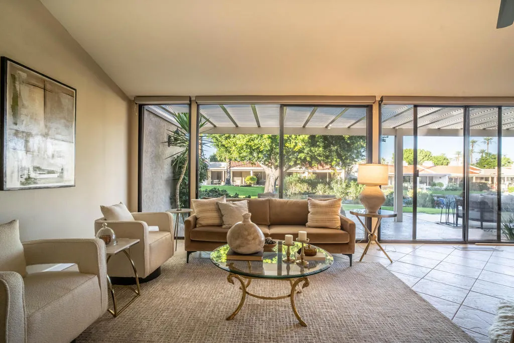 UNPRECEDENTED PRICE IMPROVEMENT -- THE BEST VALUE IN INDIAN WELLSNow dramatically reduced, this is a rare opportunity to secure one of the most compelling lifestyle properties in Indian Wells at an exceptional value. Combining luxury, location, and lifestyle, this residence stands out as one of the best deals currently available in the market.As an Indian Wells resident, enjoy exclusive privileges including discounted golf at the Indian Wells Golf Resort, preferred access to the Indian Wells Tennis Garden, special opportunities during the BNP Paribas Open, and preferred rates at luxury hotels, spas, and fine dining--resort living at its finest, every single day.Located within the gated enclave of Dorado Villas, this beautifully appointed 3-bedroom, 3-bath home offers 2,489 sq ft of thoughtfully designed living space, where elegance meets effortless indoor-outdoor living. Step just beyond your patio into a private, tennis-inspired setting surrounded by lush greenbelts and breathtaking mountain views.Inside, soaring ceilings and an open floor plan create a sense of volume and light, with expansive living and dining areas anchored by a fireplace and a sunken bar with wine cooler--ideal for entertaining. Walls of glass open to a covered patio, perfect for morning coffee, relaxed afternoons, or sunset gatherings.The kitchen is both refined and functional, featuring granite countertops, stainless steel appliances, and generous cabinetry. A sun-filled central atrium adds a unique architectural element, bringing warmth and natural light throughout the home.Each bedroom is a private en-suite retreat, including a versatile guest room with Murphy bed and another with its own entrance and patio--ideal for hosting with comfort and privacy. The primary suite offers a tranquil escape with a walk-in closet and spa-inspired bath.Dorado Villas elevates the experience with nine pools and spas, ten tennis courts, pickleball courts, and beautifully manicured grounds set against stunning mountain backdrops.This is more than a home--it's an extraordinary value and an elevated desert lifestyle, now more attainable than ever.