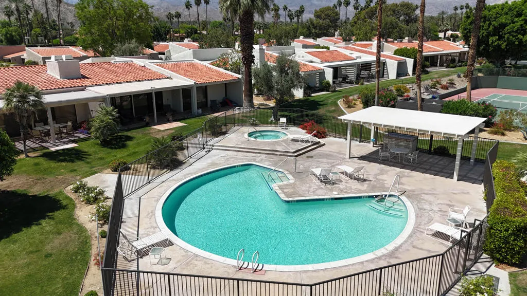 Newly priced -- a private tennis lifestyle just beyond your back patio. This beautifully appointed 3-bedroom, 3-bath residence spans 2,489 sq ft of thoughtfully designed living space, seamlessly blending comfort, elegance, and effortless indoor-outdoor flow.Soaring ceilings and an open floor plan welcome you into expansive living and dining areas, anchored by a cozy fireplace and a sunken bar with wine cooler--perfect for entertaining. Walls of glass frame sweeping mountain views and open to a covered patio, creating an ideal setting for morning coffee, relaxed afternoons, or sunset dinners.The kitchen is both stylish and functional, featuring granite countertops, stainless steel appliances, abundant cabinetry, and an excellent layout for hosting family and friends. At the heart of the home, a light-filled central atrium creates a tranquil indoor oasis, bathing the interiors in natural sunlight throughout the day.Each bedroom offers a private retreat with its own en-suite bath. One guest suite features a Murphy bed for flexible living, while another enjoys a separate entrance with private patio access--ideal for visiting guests or extended stays. The expansive primary suite is a true sanctuary, complete with a walk-in closet and a spa-inspired bath designed for relaxation.Step outside to lush greenbelts, sparkling community pools, or take a short stroll to the tennis courts just steps from your door. Dorado Villas is a gated, resort-style enclave offering nine pools and spas, ten tennis courts, two pickleball courts, and beautifully manicured grounds set against breathtaking mountain backdrops.As an Indian Wells resident, enjoy exclusive city benefits including discounted golf at the Indian Wells Golf Resort, preferred access to the Indian Wells Tennis Club, special opportunities during the BNP Paribas Open, and reduced rates at luxury hotels, spas, and fine dining.This is more than a home--it's an elevated desert lifestyle waiting to be embraced.