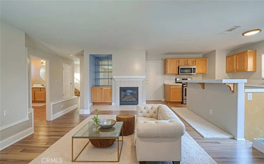 Spacious Home in a Fantastic Location Welcome to this well-maintained home featuring a highly functional and comfortable floorplan. The main level includes a separate living room, a bright kitchen with an island and breakfast bar, an eat-in dining area, a step-in pantry, and an open family room with a cozy fireplace. A full bedroom and bathroom on the first floor offer excellent flexibility for guests, multi-generational living, or a home office. Upstairs, you’ll find a generous loft area, two secondary bedrooms, a full bathroom, and a primary suite complete with a walk-in closet. A conveniently located laundry room is also on this level. The backyard has been spruced up and is ready for entertaining, offering privacy and room to relax. Additional features include a two-car attached garage and an inside-track location with no direct backyard neighbors. All of this within minutes of shopping, parks, schools, and freeway access — a wonderful place to call home.