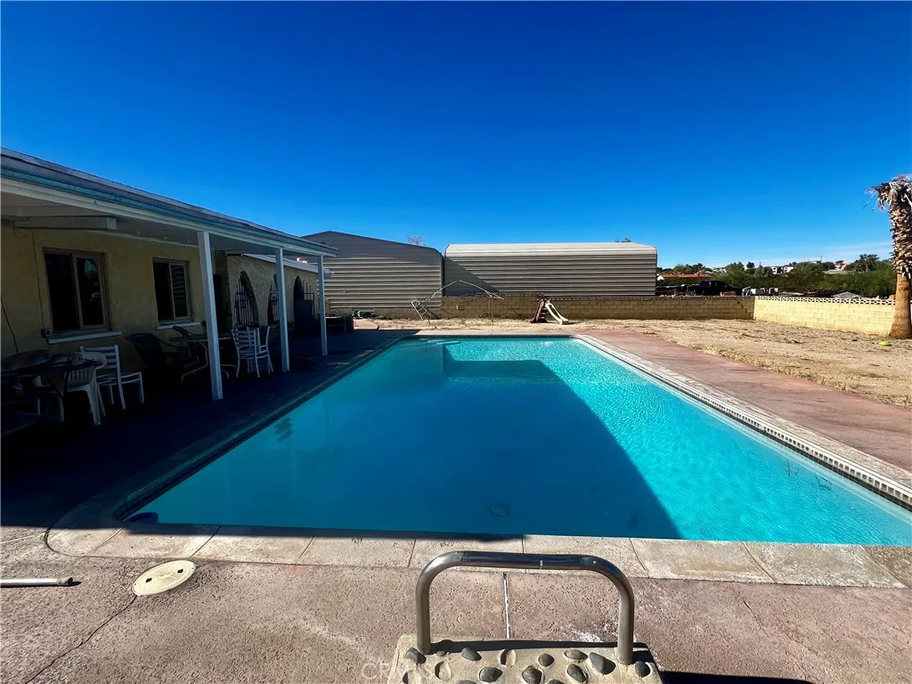 Welcome to 74284 El Paseo Dr. in 29 Palms, a spacious three-bedroom, two-bath pool home offering approximately 1,788 square feet on an expansive 1.25-acre lot. While the home could benefit from some light TLC, it already has a strong foundation of desirable features, including all-tile flooring for easy maintenance and updated dual-pane windows throughout. Two bedrooms and one bathroom sit on one side of the home, while the opposite wing offers a unique oversized bedroom suite that could be used as-is or potentially reconfigured into two smaller bedrooms with a living area—an excellent option for those needing flexible space. The kitchen includes upgraded stainless steel appliances, and the home offers multiple heating options with a pellet stove, wood-burning stove, and central HVAC on the opposite side. The impressive wood-beam ceilings highlight craftsmanship that’s becoming rare to find. Outside, you’ll find a fantastic in-ground pool, a covered patio, and a fully walled backyard for privacy. A standout amenity is the huge workshop/garage equipped with 220V power, dual oversized roll-up doors, and approximately 1,200 square feet of space, plus an additional carport with a solid foundation. For buyers with recreational vehicles, tools, or equipment, this setup is exceptional. Additionally, the home next door—and the connecting lot beside it—will also be available, creating the potential opportunity to assemble a multi-property family compound. With a little polish, this home is a true diamond in the rough offering space, utility, and tremendous potential.