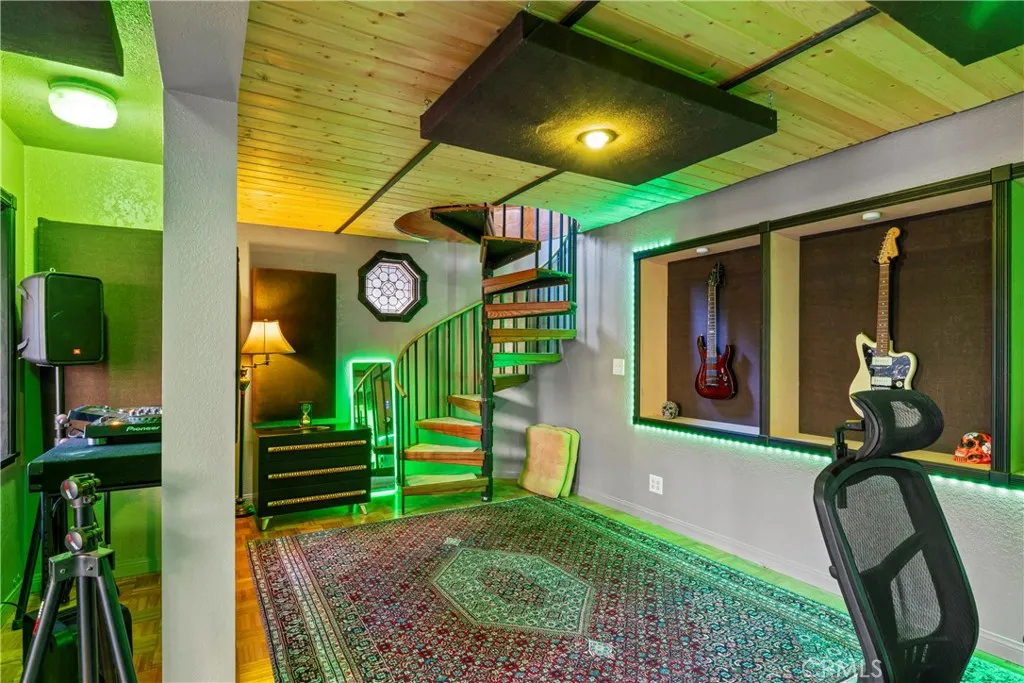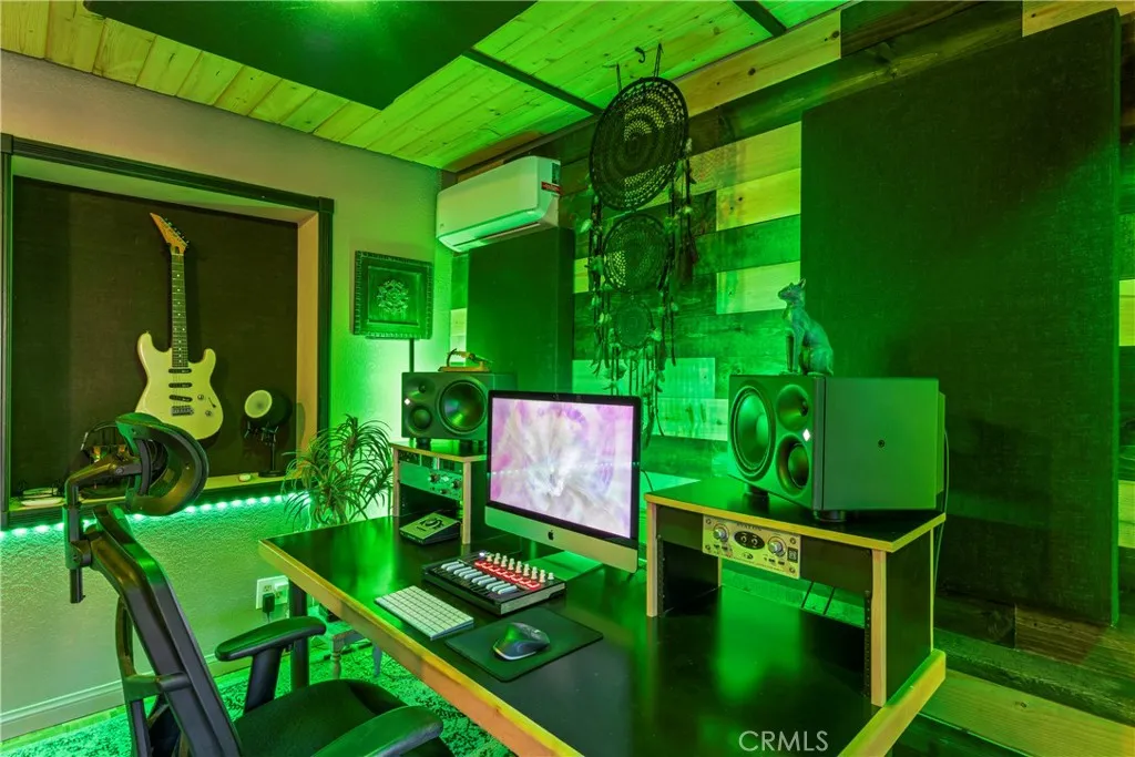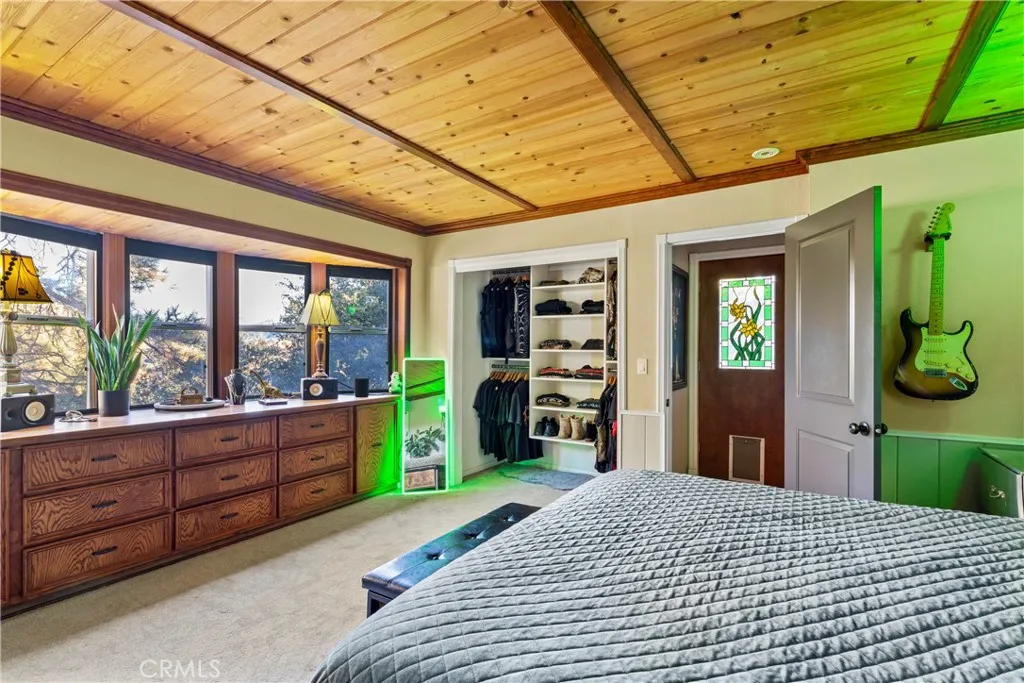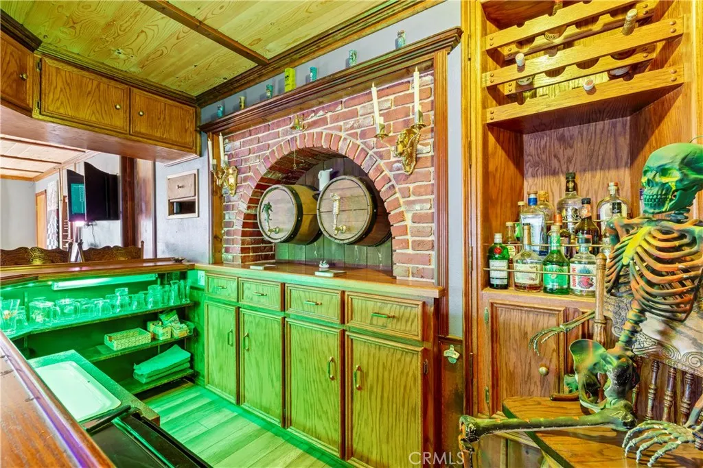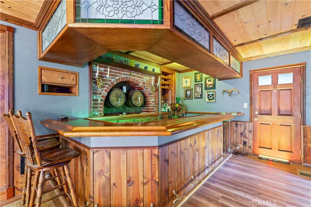 Stunning 3-bed, 4-bath craftsman retreat with unmatched privacy, forest surroundings, and sweeping skyline views of the rolling mountaintops—completely unobstructed by neighboring homes. Enjoy four decks immersed in nature, ideal for outdoor dining, grilling, stargazing, and relaxing in total seclusion. Located just 3 minutes from Goodwins and Lake Gregory, this home offers peaceful mountain living with convenient access to town. The home features four levels. The main entry level includes warm wood ceilings, abundant natural light, bay-window, a cozy fireplace with an open concept kitchen and dining. The second level includes all bedrooms, with the primary suite offering a new split-unit climate-control system, blackout shades, ensuite bath with shower, and upgraded California Closets. The third-floor entertainment level is a true standout—complete with a full bar, functional taps and keg fridges, pool table, shaded deck, and even a hidden door behind the bar for extra storage. An additional family/bonus room with its own fireplace provides flexible use options. The fourth level has been transformed into a sound/music studio and includes an additional split unit. this space offers adaptability for studio use, guest space, or an additional bedroom (buyer to verify any intended use). Upgrades include newer roof (202 2), tankless water heater, newer furnace, newer LG dishwasher, split units (primary & lower level), AC in living room and guest room, blackout shades, new blinds. A rare blend of privacy, views, and versatile living spaces—an ideal mountain escape.