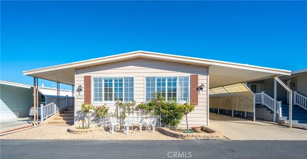 An exceptional opportunity awaits with this spacious 2-bedroom, 2-bathroom manufactured home with a huge bonus room, ideally located in a sought-after Arroyo Grande community. Situated on an approximate 1,736 sq ft lot, this property delivers generous living space and a prime chance for personalization. The bright interior features an open floor plan with expansive living areas, including a sizable living room and a separate family room. Both spaces are finished with neutral paint, plush carpeting, and are illuminated by large windows fitted with classic shutters, ensuring a cheerful and inviting atmosphere. The well-appointed kitchen is defined by classic wood cabinetry offering significant storage, and it flows seamlessly into the dedicated dining area, which boasts an attractive built-in hutch with glass display frontsperfect for entertaining. The two bedrooms are roomy and comfortable. The primary suite features elegant gold-framed mirrored closet doors and a private en-suite bathroom with a classic enclosed shower. The second full bathroom is equally functional, offering extended vanity space and cabinet storage. The bonus room could be used as a bedroom since it has an oversized closet. The homes exterior is complemented by beautiful landscaping, a paver-stone walkway, and steps leading up to a covered, sheltered porch ideal for enjoying the mild climate. Convenient covered carport parking is also included. Combining location, size, and potential - this home is ready for its next chapter ... as your new home!