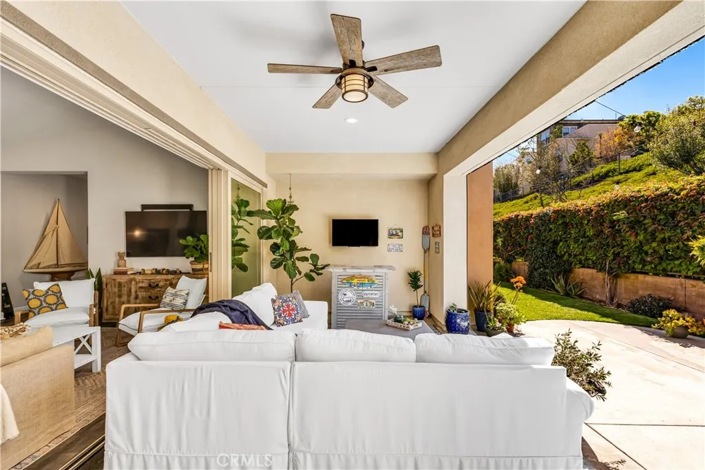 This 2 bedroom, 2.5 bath, 1,864 square foot single family home in the 55+ community of Arista at Esencia in Rancho Mission Viejo offers the comfort, beauty, and easy living that so many dream of. Ideally located at the end of a quiet cul de sac, this home enjoys an especially private and tranquil setting, tucked away from busy streets and everyday noise. Step inside and you immediately feel the openness of the floor plan, designed for relaxed indoor and outdoor living. Slide open the sliding window panels and let the fresh breeze flow through as you sip coffee on your gorgeous lanai. When friends stop by, this space becomes the perfect place to gather and lets you enjoy it any time of year. The kitchen features white shaker cabinets, quartz countertops, stainless steel appliances, and a 5 burner gas range. It opens to the living and dining areas so everyone stays connected during celebrations, or nights with family. There is also an optional retreat or office area that can be your quiet reading nook, or a peaceful place to focus, and can easily be converted into a third bedroom if desired, offering flexibility to fit your needs. Your private primary bedroom offers everything you need to unwind. The attached primary bathroom includes dual vanity sinks, quartz countertops, a glass enclosed shower, and a spacious walk in closet. The second bedroom has its own ensuite bathroom, giving guests a place to relax and feel right at home. Additional thoughtful touches include an inside laundry room, a tankless water heater for energy efficient, on demand hot water, and fully paid solar panels to help keep utility costs down while supporting a more efficient lifestyle. Tucked back at the end of a quiet cul de sac, the location provides a rare sense of peace, privacy, and a restful environment that makes every day feel like a retreat. Life in Rancho Mission Viejo is where the real fun begins. Start the morning with a swim, meet friends at the firepits, plan a barbecue at one of the many picnic areas, or join a group poolside. When you feel active, head to the courts for pickleball or explore the many community gathering spaces. A local favorite is the Hilltop, with a stylish bar and game room where friends gather and socialize. The amenities are designed to bring people together and make every day feel like a vacation. This home brings together peace, comfort, connection, and the best of Southern California living.