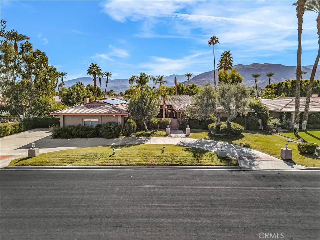 Experience refined desert living in this Contemporary Mediterranean retreat, offering 3,668 sq. ft. of elegant interiors on an expansive ½-acre lot in the heart of Rancho Mirage. A sweeping circular driveway sets a grand first impression, leading to a private front courtyard complete with a tranquil fountain. Inside, a sophisticated blend of materials elevates every space; marble flooring graces the entry, living and dining areas, while rich hardwood adds warmth to the kitchen, kitchen nook and family rooms. The home features three large bedrooms, each designed as master suites, providing luxurious comfort and privacy. The spacious living and family rooms each showcase their own fireplaces, creating inviting spaces to relax and entertain. A separate wet bar with a wine cooler enhances the home’s effortless flow for gatherings. Modern upgrades include two newer AC units and SolarEdge solar panels—$50K fully paid off—for year-round efficiency and peace of mind. A full security system adds an extra layer of comfort. Outdoors, the backyard is an entertainer’s dream, offering a separate patio area, a beautiful in-ground pool, and a relaxing hot tub—both perfect for enjoying the desert lifestyle. This residence also enjoys a prime location near Cotino, the new Disney® Storyliving community, with no HOA, no land lease, and just a quick five-minute drive to the Westin Golf Resort & Spa—adding even more convenience and value to this exceptional Rancho Mirage opportunity.