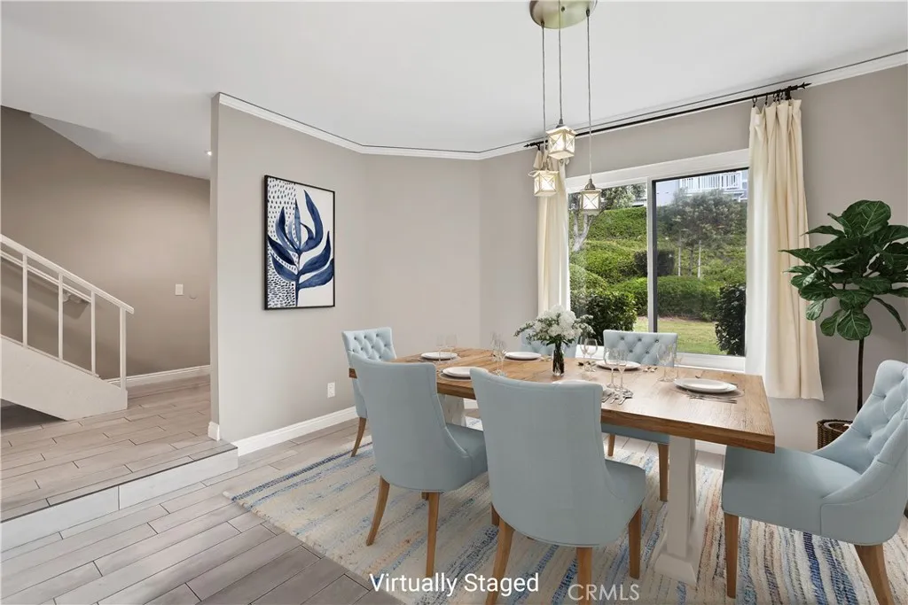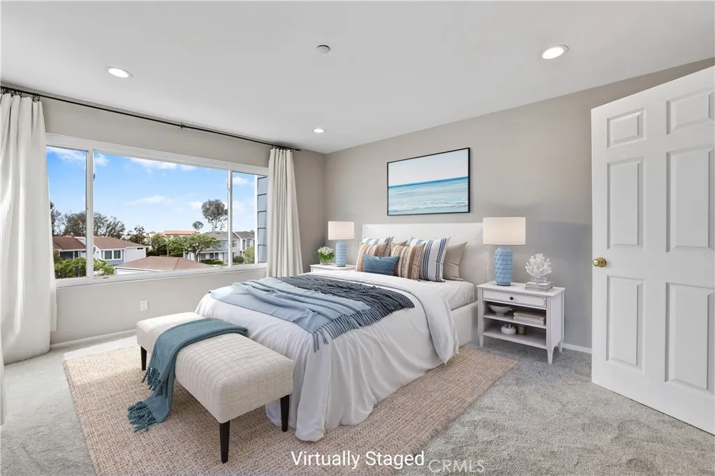 Welcome to 2162 Calle Ola Verde, an exceptional opportunity to own a 3-bedroom home less than a mile from the beach in the highly desirable Faire Harbour community of San Clemente. Positioned as an ideal entry point into coastal living, this two-story residence offers a flexible and functional layout designed for today’s lifestyle. With three full bedrooms, the home easily accommodates remote work, guests, or a growing household; delivering a level of versatility rarely found at this price point. The main level features a bright, open living space with durable wood-look tile flooring and seamless flow between the living room, dining area, and kitchen. Quartz countertops and ample workspace provide a clean, low-maintenance foundation, ready to enjoy as-is or personalize over time. A private outdoor patio extends the living space, perfect for morning coffee or casual evenings at home. Upstairs, the primary suite offers a quiet retreat with peek-a-boo ocean views, a generous walk-in closet, and a remodeled bathroom featuring a walnut vanity and designer tile finishes. Two additional bedrooms are well-sized and filled with natural light, offering flexibility for a variety of living arrangements. Full-size upstairs laundry adds everyday convenience. Beyond the home itself, Faire Harbour offers a lifestyle that’s hard to match; lush greenbelts, a pool and spa, sand volleyball court, and a pet-friendly environment that encourages outdoor living. A detached two-car garage provides valuable storage and parking, a standout feature in this price range. Ideally located near North Beach, The Outlets at San Clemente, downtown dining and shopping, and with easy access to the 5 Freeway, this home blends coastal accessibility with everyday convenience. For buyers looking to stop renting and step into coastal Orange County ownership, this property represents a rare combination of location, space, and long-term potential.