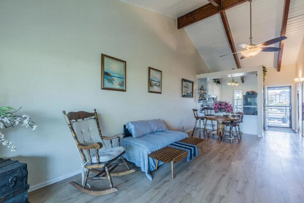 Own you own property! Enjoy soothing water views and the high vaulted ceiling, bright living spaces throughout the main living areas. This home provides two bedrooms and one bath. The primary bedroom features its own access to a private balcony, where you can enjoy serene water views and a peaceful retreat. Community Amenities Community Amenities, Residents have access to a variety of amenities through the Homeowners Association (HOA), such as a community pool, tennis court, and clubhouse, offering opportunities for recreation and relaxation.
