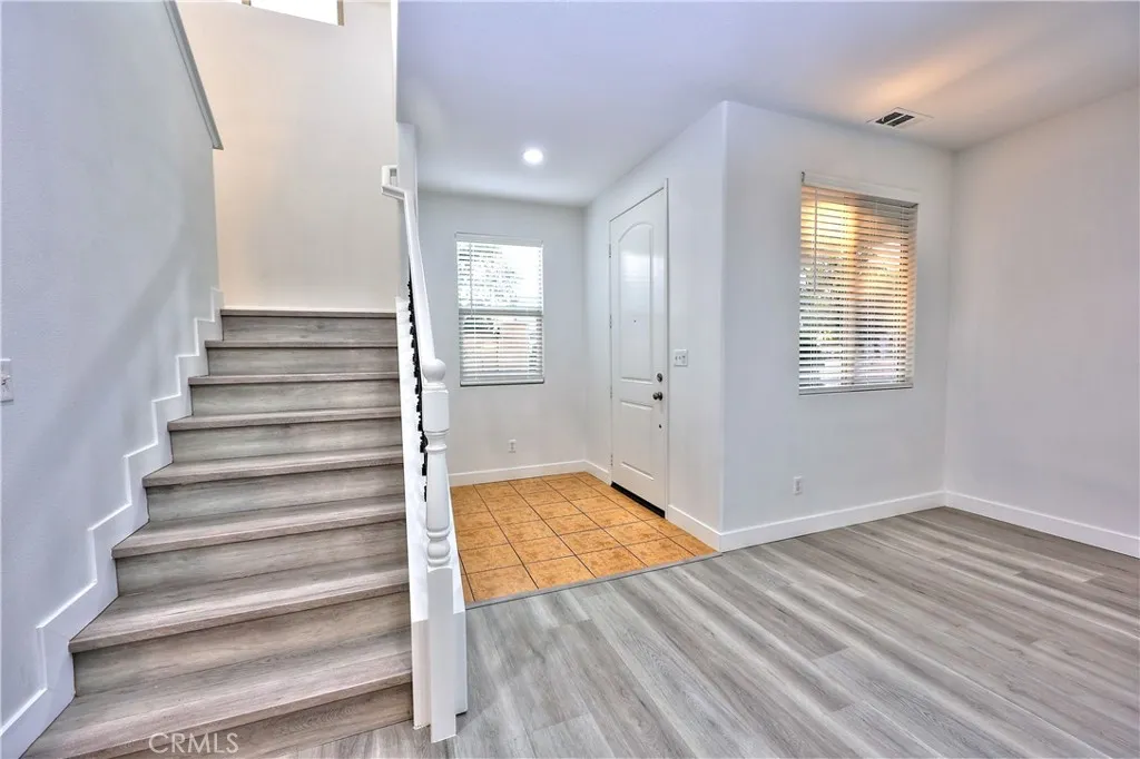 Absolutely Priced To Sell!!! Reduction for a quick sale!!! PPRICE REDUCED $59K!!! 858 Calaveras Way, a beautifully updated corner residence located inside the gated River Road Village community in Corona. Offering 4 bedrooms, 2.5 bathrooms, and 2,258 sq. ft., this home features the largest floor plan in the community and has been thoughtfully upgraded throughout.Step inside to a warm and welcoming living room highlighted by a cozy gas fireplace and new laminate wood flooring that flows throughout the home. Fresh interior paint, new LED lighting, updated mirrors, and new ceiling fans enhance the modern feel of the home. The open dining area provides plenty of space for gatherings and opens to a charming side patio—perfect for relaxing or entertaining. The contemporary kitchen features refaced and freshly painted cabinets and drawers, granite countertops, a stainless-steel 4-burner cooktop, stainless steel oven, and dishwasher—ideal for preparing your favorite meals. Upstairs, all four bedrooms are generously sized and filled with natural light. A shared balcony adds an airy touch to the upper level. The spacious primary suite includes two walk-in closets—one at the entry and another inside the ensuite bath. The primary bathroom offers dual sinks with Corian countertops, a soaking tub, and a separate shower. Additional upgrades include new toilets throughout the home. The exterior has been refreshed with new front and side yard artificial turf for low-maintenance and curb appeal. The garage has been fully updated with new paint and a durable epoxy floor, completing the home’s move-in-ready appeal. Beautifully located within a well-kept, inviting neighborhood, this property offers excellent proximity to shopping, dining, and commuter-friendly freeway access. A truly turn-key home in the heart of Corona—don’t miss the opportunity to call this home!!