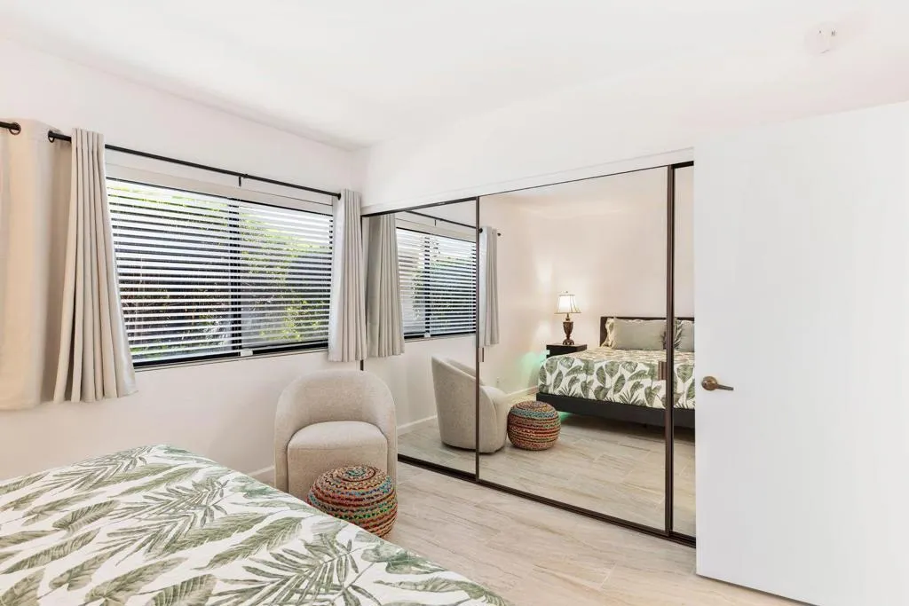 The lowest-priced three-bedroom now $669,000. Classic mid-century single-story Donald Wexler in the desirable downtown Palm Springs community offers exceptional value and timeless style. The entire 1,608 sq. ft. home was recently professionally repainted in Benjamin Moore white throughout, including all doors and trim. Sellers also had a craftsman replace all cabinet rails for perfect self-closure. Coming soon will be a new desert landscape leading to the front door. The enclosed atrium with new wood deck flooring provides abundant natural light through all newer double-pane sliders and windows. The kitchen features wood cabinetry, granite countertops, and newer stainless-steel appliances. The light, wide tile flooring throughout, a vaulted ceiling in the living room, and large sliders that frame the beautiful scenic mountain view. A rare, oversized backyard patio is fully enclosed. The attached car garage includes a newer furnace and a water heater. The Rose Garden community offers manicured grounds, two pools, three spas, four pickleball courts, and two tennis courts. This home is centrally located near shopping, dining, groceries, Starbucks, the Mizell Senior Center, Sunrise Park, the public library (currently under renovation), and the City pool. Perfect full-time residence or seasonal getaway!