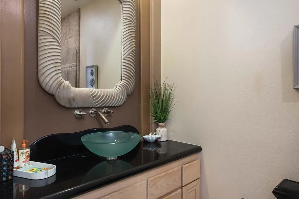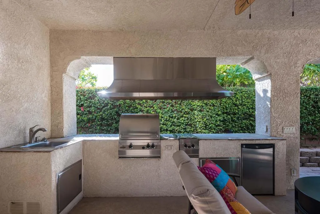 Discover resort-style living at 78721 Siena Ct in the desirable Bella Vista community. This beautifully maintained 3-bedroom, 2-bath (+1 outside bathroom) home features an open floor plan and a spacious covered patio perfect for year-round entertaining. Enter the front door foyer through a gated courtyard and you will find elegance and comfort. Dramatic high volume ceilings and a lovely dining area, custom bar space and custom wall in living room. Once in the kitchen there is a double oven, range, dishwasher, plenty of counter space and another casual dining area. The Primary en-suite features dual sinks, walk-in shower and a large soaking tub. There is a guest bedroom with a walk in closet. The third guest bedroom also has a walk in closet and is currently being used as a tv room, could easily be converted back to a private bedroom. Step outside to your private oasis complete with a sparkling saltwater pebble-tec pool, waterfall spa, cozy fire pit, and a covered built-in BBQ, outdoor kitchen, outside shower and bathroom! A rare opportunity to enjoy luxury, comfort, and indoor-outdoor living at its finest. Bella Vista community is conveniently located near shopping, dining, entertainment and easy access to surrounding Desert cities. Close to Indian Wells Tennis Gardens and all that beautiful La Quinta has to offer. Low HOA's paid quarterly of only $145! Bella Vista electric company being serviced by Imperial Irrigation District for lower electricity costs!