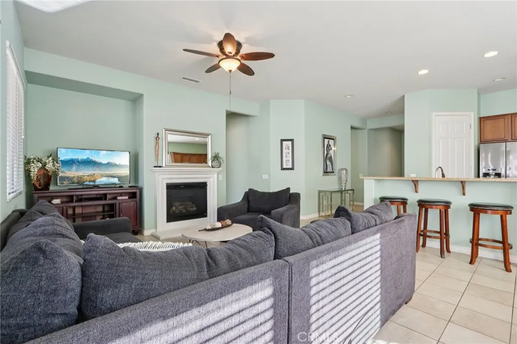 Welcome to your dream home in the highly sought-after 55+ Solera Diamond Valley Community! This beautiful 2-bedroom, 2-bathroom plus den home offers 1,782 sqft of thoughtfully designed living space perfect for relaxed, active living. Step inside to an open-concept layout where the living, dining, and kitchen areas flow seamlessly—ideal for entertaining or simply enjoying your day-to-day. Cozy up by the fireplace on cooler evenings or step through the sliding glass door to your enclosed patio, a perfect spot for morning coffee or afternoon relaxation. The home features spacious bedrooms for ultimate comfort, and a kitchen equipped with a refrigerator, washer, and dryer included for added convenience. Outside, enjoy drought-tolerant landscaping and easy-maintenance front and back yards, allowing you to spend more time enjoying the community and less on upkeep. This home combines style, comfort, and practicality in a vibrant, welcoming 55+ community—don’t miss the opportunity to make it yours!