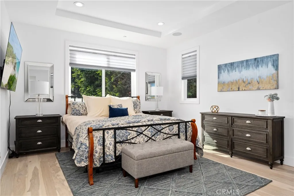 Built in 2023, this Del Rey gem–set on an impressive 8,500 Sq Ft Flat Lot and designed by renowned Architect, Kenneth Niemersko–beautifully embodies modern living. The home features 4 Bedrooms and 3 Bathrooms with a spacious, flowing layout enhanced by advanced Smart Home technology. Upgrades include hardwiring for internet, a dedicated Zoom Room with a built-in desk, a Smart Closet for networking equipment, and integrated surround sound throughout the entertainment spaces. The Gourmet Chef’s Kitchen boasts professional-grade appliances, a walk-in pantry, a large quartz-topped island with bar seating, and an additional expansive buffet counter. The great room has sliding glass doors, opening to a large yard with lush landscaping that blends interior comfort with natural beauty. The outdoor retreat includes a built-in BBQ and refrigerator-perfect for hosting gatherings or enjoying quiet evenings. The main floor includes a guest bedroom, a full bathroom, and an attached two-car garage with direct access. Upstairs, a generous Loft provides space for multiple uses. The Primary Suite features a tray ceiling, a walk-in closet, and a luxurious spa-inspired bathroom complete with dual vanities and a freestanding soaking tub—an ideal space for rest and rejuvenation. Fully owned Solar Panels add to the home’s efficiency. Situated on a cul-de-sac near Sunkist Park and conveniently close to the 405, 10 and 90 freeways, the location is excellent for commuters. The beaches of Santa Monica, Venice, Marina Del Rey and Long Beach are just a short drive away, offering quintessential coastal living.