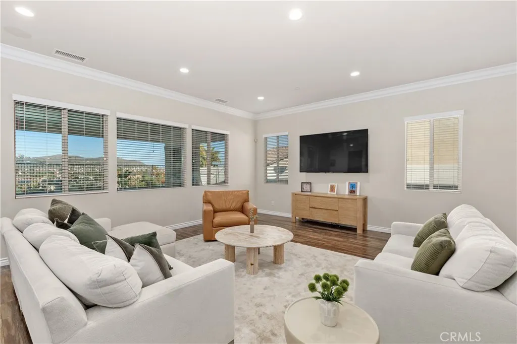 Located on a quiet cul-de-sac in the gated Province at Audie Murphy Ranch, this contemporary 4-bedroom, 3-bath pool home offers approx. 3,500 sq ft of open-concept living with hill and Canyon Lake views. Features include a main-level bedroom and bath, luxury vinyl plank flooring, high ceilings, crown molding, and surround sound. The gourmet kitchen offers quartz countertops, stainless steel appliances, large island, custom cabinetry, and walk-in pantry. Upstairs includes a loft, secondary bedrooms with walk-in closets, and a spacious primary suite with spa-style bath. The private backyard showcases a saltwater Pebble-Tech pool and spa with waterfalls and swim-up bar, California room, BBQ island, basketball court, and Alumawood patio cover. Additional highlights include owned solar, 3-car tandem garage with EV charging, and access to community pools, parks, trails, and nearby shopping with easy freeway access.