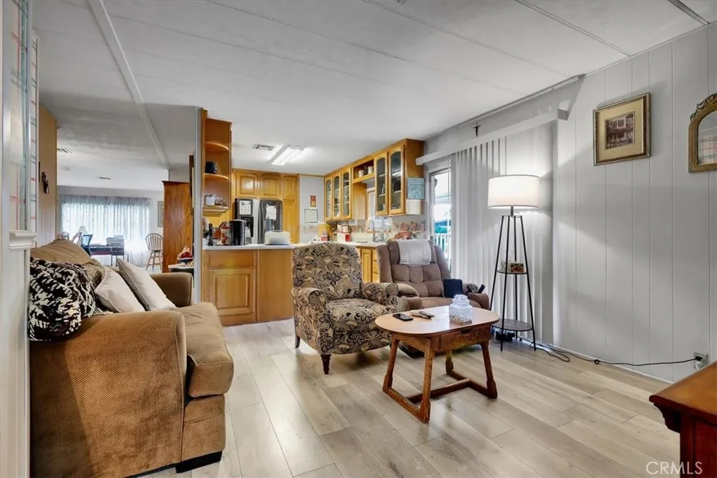 Welcome to this charming 2-bedroom, 2-bath, 1,344 sq ft home located in a beautifully maintained 55+ senior community. This spacious residence features a bright living room, a large dining area with built-in cabinetry, and a well-appointed kitchen with plenty of storage. The living room has been professionally reinforced to support the weight of a full-size pool table, making it perfect for entertaining or enjoying your favorite hobbies. The home also offers a covered carport, indoor laundry, and a low-maintenance yard with mature fruit trees. Clean, comfortable, and full of potential—this home is ready for its next owner to make it their own.