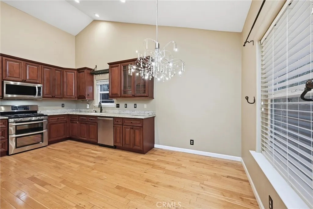 Contemporary Cul-De-Sac Cutie! This upgraded, modern home delivers standout curb appeal and an ideal location—privately tucked away on a small cul-de-sac yet just minutes from local markets, shops, and restaurants. The beautifully landscaped and fully fenced front yard offers exceptional privacy, while the extra-wide driveway provides abundant parking for an RV, boat, or multiple vehicles, in addition to the attached 2-car garage. Step inside to soaring vaulted ceilings and rich hardwood flooring that flows throughout the entire home. The spacious living room features a built-in media center with a mounted TV included. The gorgeous, updated kitchen showcases upgraded cabinetry, newer stainless steel appliances—including a propane range with dual ovens—and granite slab countertops. Adjacent dining area shines with a lovely chandelier and inviting natural light. Retreat to the private primary suite, complete with coffered ceilings, an oversized walk-in closet, dual sinks, granite slab counters, an upgraded vanity area, a large stall shower, and a private water closet. Two additional rooms offer flexibility; one includes custom built-in cabinetry with pull-out drawers in place of a traditional closet. A dedicated indoor laundry room includes the washer and dryer. The fully finished, sheetrocked garage provides excellent storage and workspace. Outside, enjoy a beautifully landscaped and fenced yard plus a bonus storage shed for garden tools or extras. An excellent solar lease is in place, offering significant savings with power purchased at a rate lower than PG&E. Modern, stylish, and move-in ready—this home checks all the boxes for comfort, convenience, and value!