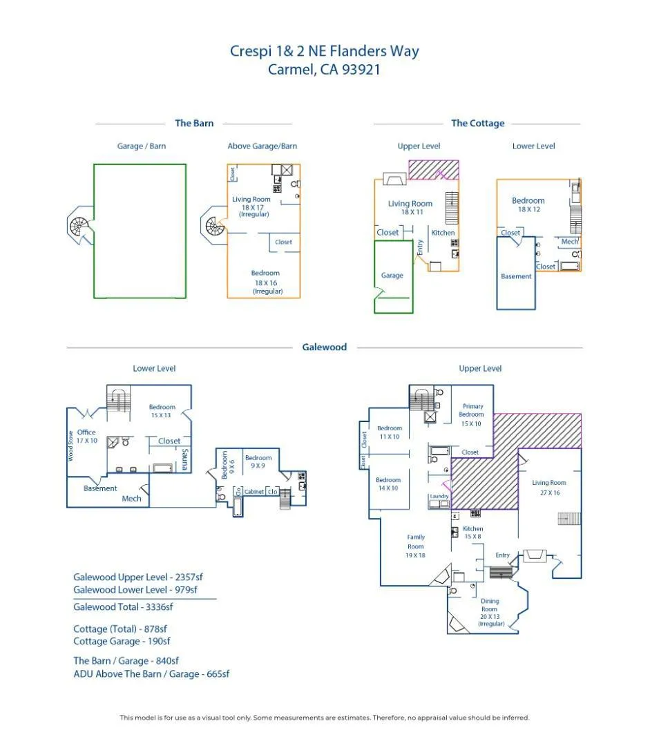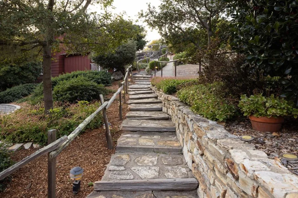 Galewood is a charming compound that carries the quiet luxury of a Carmel property held in one family for more than 50 years. Timelessly crafted, the main house offers 5 bedrooms and 4.5 baths across 3,336 SqFt, with 4 fireplaces, hardwood floors, brick tile accents, and warm redwood interiors. Tucked into its own corner of the grounds is a quaint, 878 SqFt cottage with 1 bedroom and 1 bathroom. The Barn, crafted by Daniels and House, features 665 SqFt of living space with 1 bedroom and 1 bathroom, along with a 4-car garage. Behind the Barn is a bridge connecting directly into Mission Trail Park, a 34-acre preserve with winding trails. Outdoor amenities include a dual-sport court, large deck overlooking the forest, tiered entertaining areas, lighted pathways, and lush gardens. Together, these pieces form an elevated Carmel compound with 4,879 SqFt of total living space across nearly 26,000 SqFt of land, providing an unplugged, summer-camp-like sense of escape. With its rare scale and history, the property supports multigenerational living, a generational family retreat, investment options, or a timeless legacy estate.