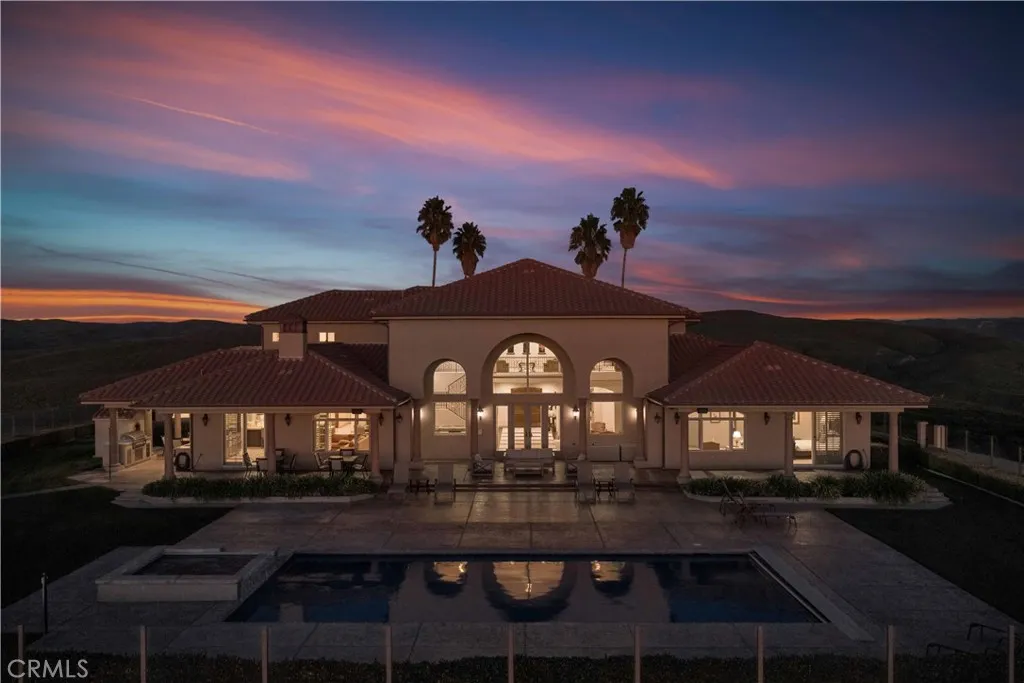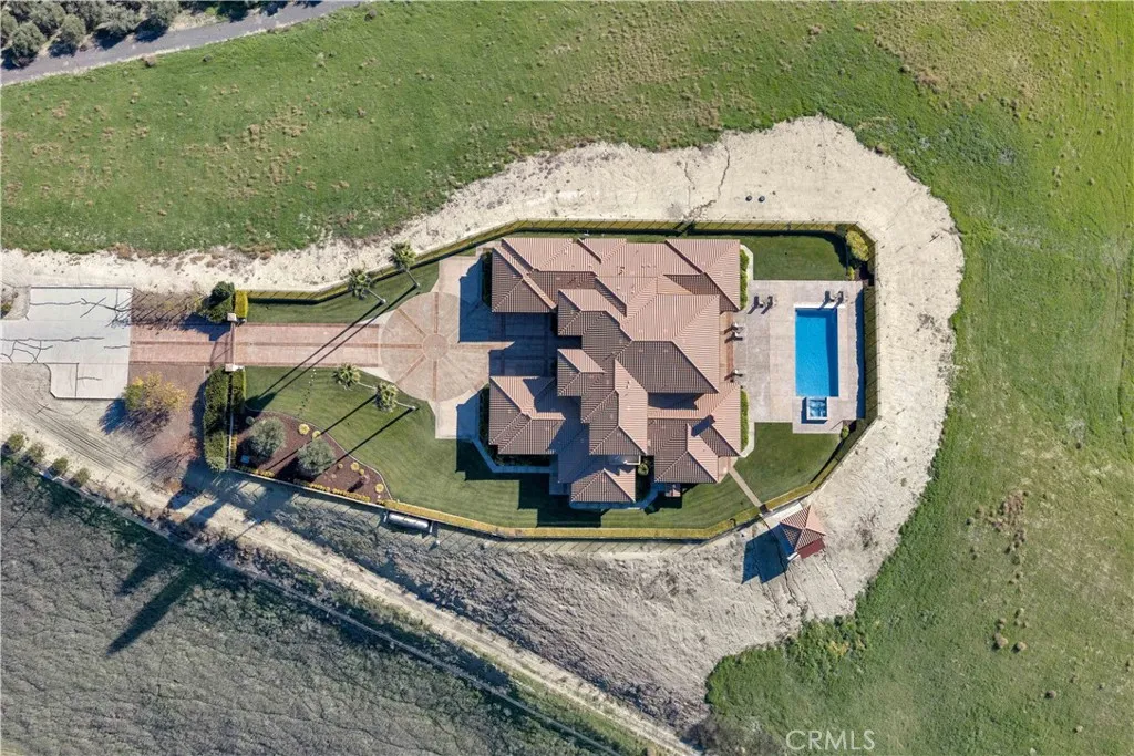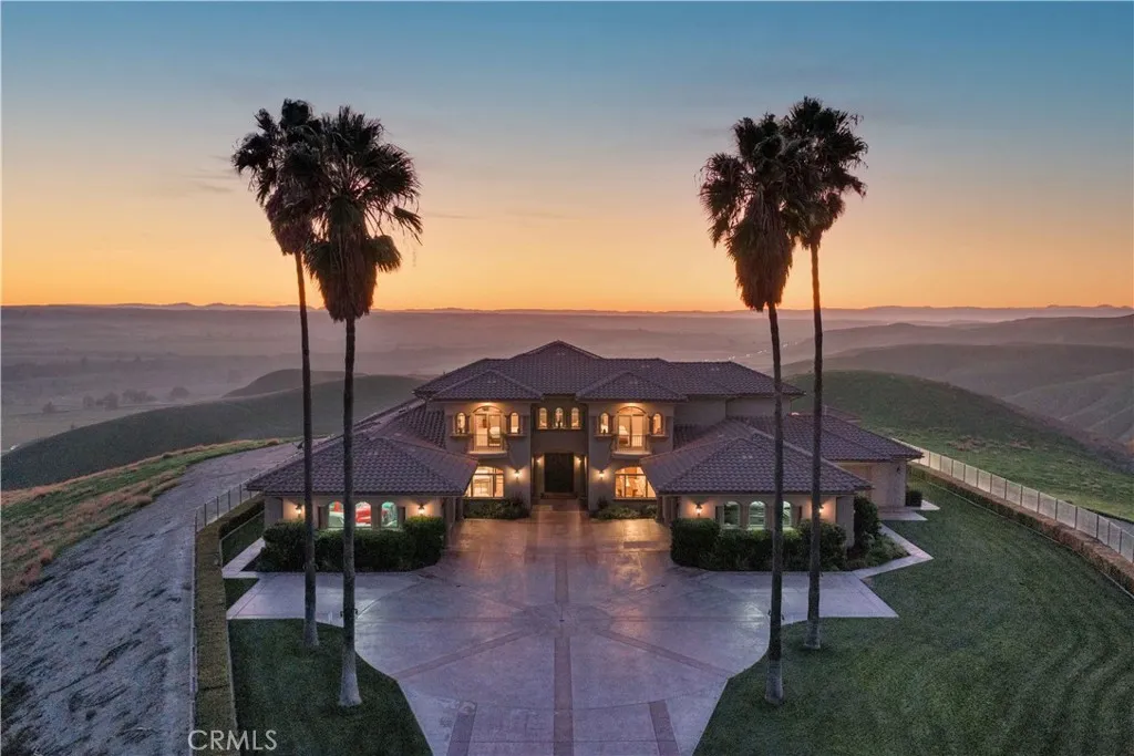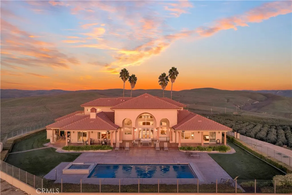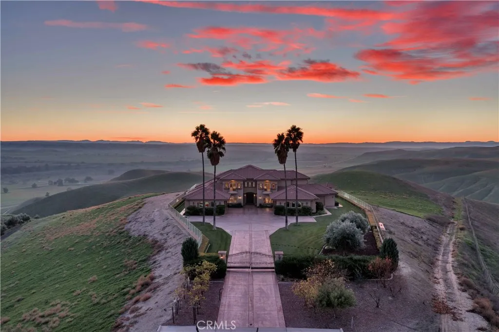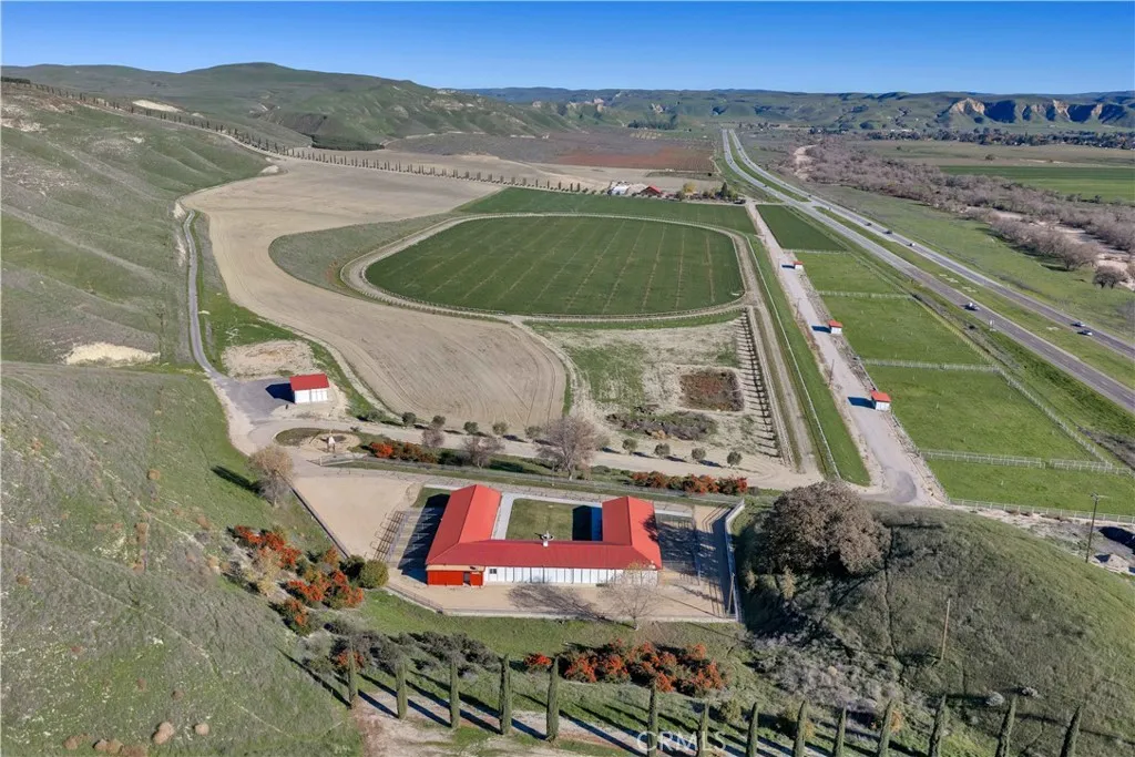 Welcome to Five Arches Ranch, an extraordinary 639.5± acre estate in the heart of California’s Central Coast, where wide-open space, wine country living, and true ranch luxury come together. Spanning three legal parcels, this legacy property offers a rare combination of agricultural production, equestrian facilities, residential comfort, and exceptional privacy. At the center of the ranch sits a beautifully maintained 7,772± SF main residence (7BD/6.5BA), built in 2008 and positioned at the end of a gated, cypress tree-lined private driveway. Designed to frame panoramic ridgeline and vineyard views, the home features large windows, an attached guest quarters with a kitchenette, two 2-car garages, a resort-style 40' x 20' pool with automatic cover, a built-in spa, an outdoor kitchen with a pizza oven, and 745± feet of glass fencing surrounding the main compound. The chef’s kitchen is complete with high-end Dacor stainless steel appliances, a breakfast nook, sprawling granite counters, a walk-in pantry, and a climate-controlled wine cellar. The living room and loft benefit from soaring ceilings, natural light through large arched windows, and tasteful tile floors. Five Arches Ranch is deeply rooted in equestrian tradition. The extensive horse facilities include an impressive 60' x 50' horse barn with 11 stalls, an attached trainer’s apartment, 800 linear feet of fenced turnout, and a 40-foot radius hot walker. Additional structures include a 925± SF hay barn, a 4,000± SF equipment shed with a fuel station, a ranch office, two ranch houses, and a historic 1935 barn, seven buildings in total supporting full ranch operations. Agricultural assets include 12± acres of producing olive trees, 23± acres of Syrah (1998), 10± acres of Cabernet Sauvignon (2017), and extensive irrigated ground (264.62± acres). Four high-capacity wells support farming, equestrian use, and future expansion. The ranch also offers grazing land, a second elevated plateau ideal for a future home site, and nearly 2 miles of Highway 46 frontage for accessibility. A property of this scale, versatility, and beauty is exceptionally rare in Paso Robles wine country. Five Arches Ranch offers land, luxury, privacy, water, and income potential, all in one extraordinary package.