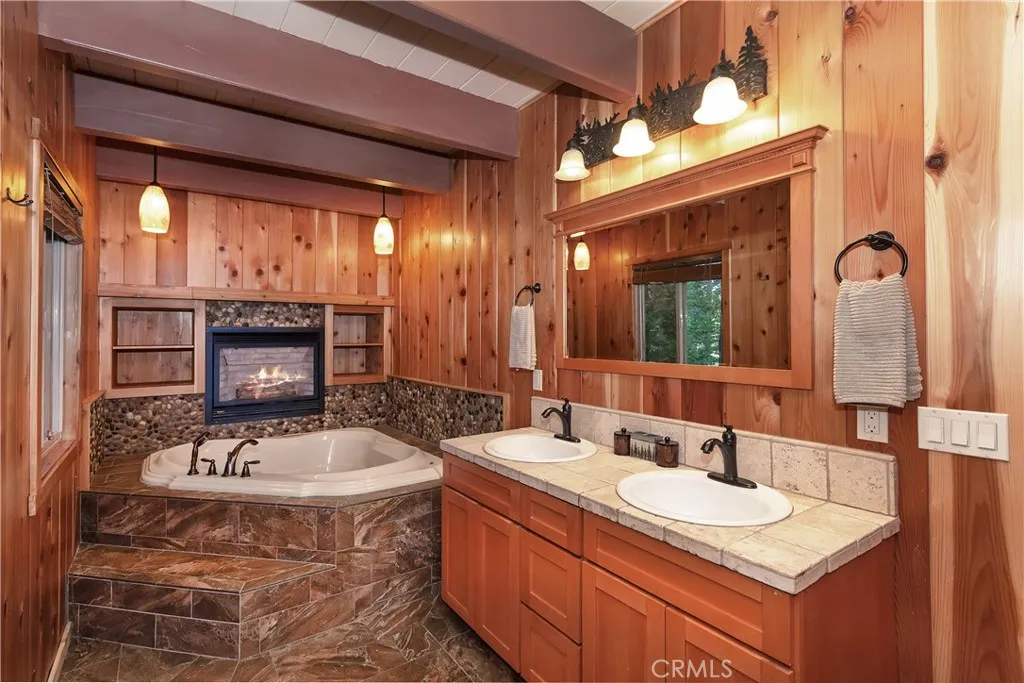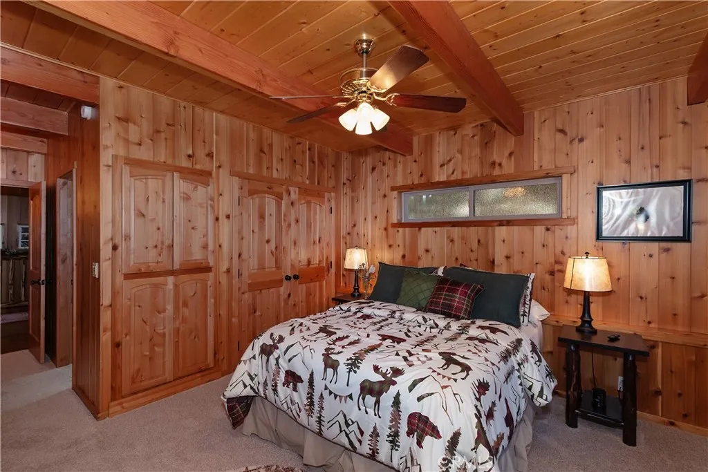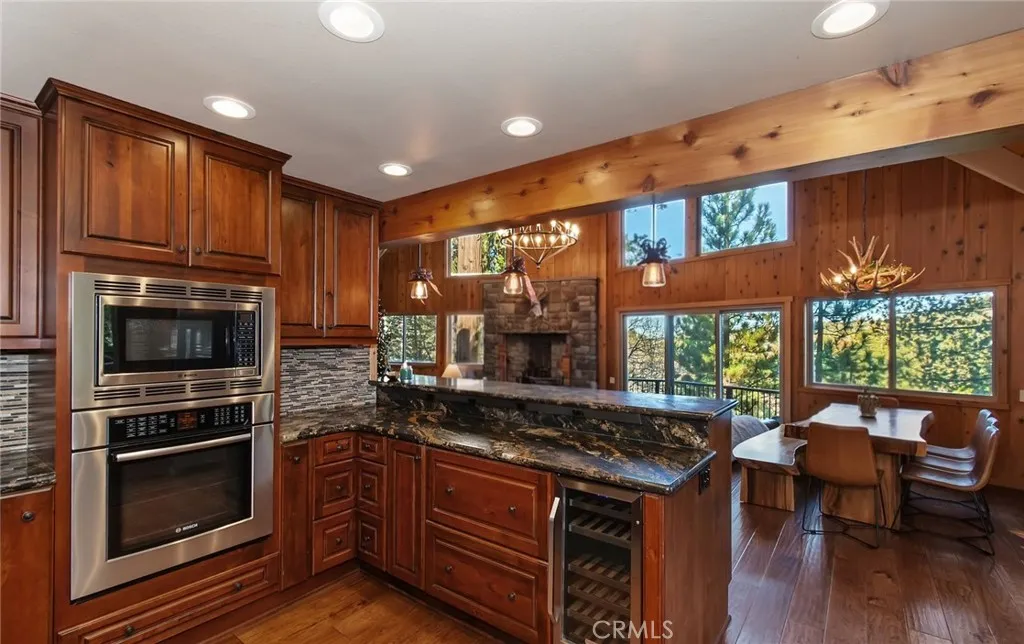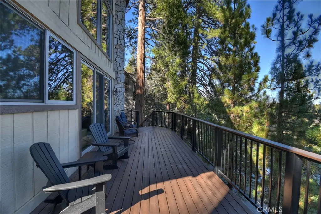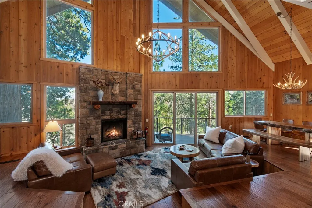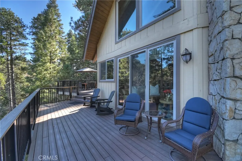 What is a "Prow-Style" home? Think of the front of a large boat or ship with an impressive "bow", if you will. The "Prow-Style" homes with their "wall of glass" represent the most popular architectural style of home in Lake Arrowhead. Most of the "Prow Style" homes were built by a renowned local builder in the 1960's-1970's. This particular "Prow" is a true gem offering modern comfort with timeless rustic charm. With 3 bedrooms, 4 baths, a den & a separate loft open style family room, it offers breathtaking panoramic views of the golf course and would work wonderfully as a full-time residence, vacation home, or short-term rental. The home features 3 spacious bedroom suites, one on the main level, and each with an attached bath for exceptional privacy. The lower-level primary suite offers a spa-like retreat with a soaking tub, fireplace, dual vanities, and direct access to the outdoor spa—perfect for peaceful relaxation. A unique bunkroom suite sleeps up to six. The expansive upstairs loft is currently the perfect family/game room although it could double as a bedroom, too, offering flexibility for your lifestyle needs. The main level showcases cathedral ceilings and a “great room” open floor plan that fills the living space with natural light and frames the long-range mountain and golf course views. The living room features a beautiful stone fireplace, enhancing the home’s warm mountain ambiance. The chef’s kitchen includes gorgeous granite slab countertops, high-end stainless steel appliances, a wine refrigerator, a breakfast bar, and a walk-in pantry. It’s designed for both entertaining and everyday convenience. Outdoor living shines with the wraparound deck, offering multiple areas to dine, relax, and take in the scenic surroundings. The current sellers made recent improvements including a newly added air conditioning system, new chandeliers in the living room and pool/game room, new carpet, and new blinds. The entire home underwent a massive renovation with the previous owner, including a newly redesigned kitchen and remodeled baths. Located in Lake Arrowhead, this home includes valuable lake rights, granting access to private Lake Arrowhead for boating, paddleboarding, kayaking, waterskiing, wakeboarding, sailing, and year-round alpine recreation. Beautifully updated throughout and thoughtfully designed, this home blends comfort, luxury, and nature in perfect harmony. Schedule your private showing today and experience mountain living at its finest.