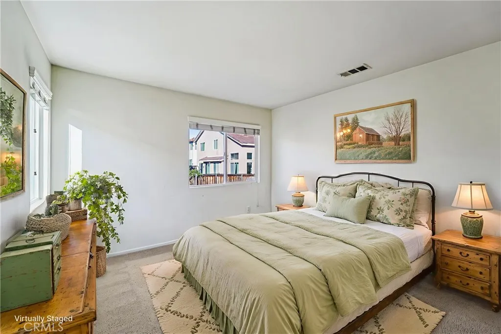 Turn Key 3 bed, 2.5 bath home is ready to be made yours and is located in the Rancho Bella Vista community! Offering great curb appeal, an attached 2-car garage, a covered porch area to enjoy, and leased Solar Panels. Also, the interior is spacious with almost 2,000 sqft of living space, high ceilings, recessed lights, carpet, and tile flooring. Enter into the formal living room and dining room which flows into the family room with fireplace and sits just off of the kitchen with granite countertops, on-trend dual-color white and blue cabinetry, with center island, and a pantry. All 3 bedrooms are located on the 2nd floor including a bonus loft area. The large primary suite features a private ensuite with dual sinks, a soaking tub, and a separate shower. There is also a full-size hall bathroom for the 2 secondary bedrooms, and a half bathroom for guests. Enjoy the fully fenced backyard with grass and concrete areas, a gazebo to relax under, and plenty of space to make your own! Conveniently located near schools, trails, shopping, dining, and not far from the 215 and 15 Fwys! Schedule your tour today!