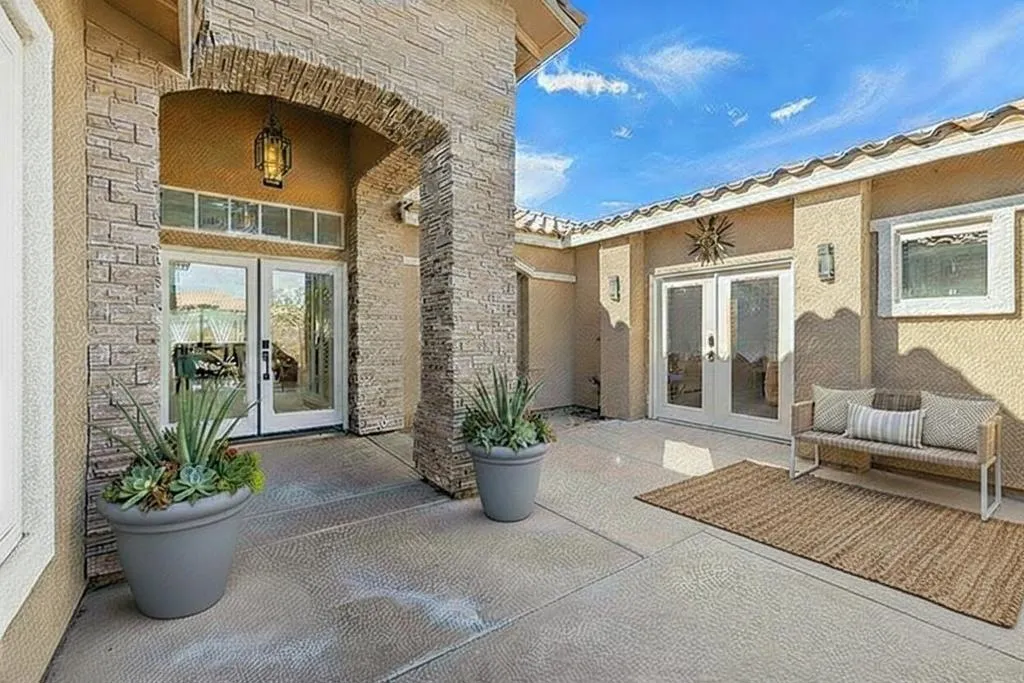 Motivated Seller! Your private desert oasis awaits! Exquisitely updated, this beautifully remodeled home in the sought-after Bella Vista neighborhood of North La Quinta offers approx. 2,600 SF of open-concept living, featuring 4 bedrooms, 3 bathrooms, and a rare private casita. Enter through designer gates into a private courtyard & enclosed patio with a cozy fire pit for intimate gatherings. Natural light pours into the expansive great room with soaring ceilings. Prepare to be impressed by the spacious newly completed stylish kitchen, thoughtfully designed for both culinary excellence and effortless entertaining. Gorgeous tiled backsplash, expansive countertops and generous cabinets, ideal for the modern cook or host. Bright breakfast nook off kitchen with French Doors that open to outdoor living with fireplace. Dining room with flexible use as a family room. Retreat to the spacious primary suite with slider and poolside views to the patio. Experience a spa-like escape in the beautifully remodeled primary bathroom, complete with a breathtaking large double shower, dual sinks, & walk-in closet. Two additional bedrooms with walk-in closets, one with glass frosted sliding doors & beautifully remodeled bathroom. A separate casita off courtyard with remodeled bathroom, walk-in closet & mini split AC unit, offers the perfect private retreat for guests. Escape to your backyard oasis with elegant travertine walkways, where you can relax in the pool & spa with soothing fountains, or host memorable gatherings around the custom fireplace & built-in BBQ. Laundry room, newer flooring throughout, recessed lighting, sola tube lighting, 2 car garage. Centrally located, in the IID for lower cost electricity. Low HOA! Close to IW Tennis Garden, dining, shopping, golf & festivals!