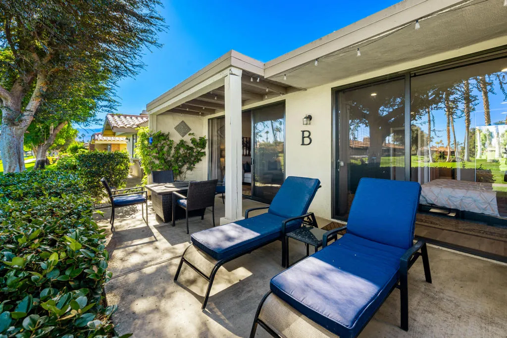 You won't want to miss this beautifully updated 2-bedroom, 2-bath condo in Monterey Country Club with spectacular golf course and water view. New recessed lighting throughout. New paint, new kitchen sink, new toilets, new mirrors, new fixtures. Stainless steel appliances, granite counters, and new upgraded tile flooring. Private front courtyard with low-maintenance landscaping. Country Club features private golf course, tennis, pickleball, gym, and clubhouse. SHORT-TERM rentals allowed--making this the perfect full-time home, seasonal retreat, or income-producing property! Monterey Country Club offers: 27 holes of golf, 13 tennis courts, 20 pickleball courts, bocce ball courts, 37 pools & spas, and clubhouse & fitness center. All just minutes from El Paseo shopping, fine dining, hiking, Palm Springs Airport, and more. Don't miss this rare opportunity--schedule your private showing.