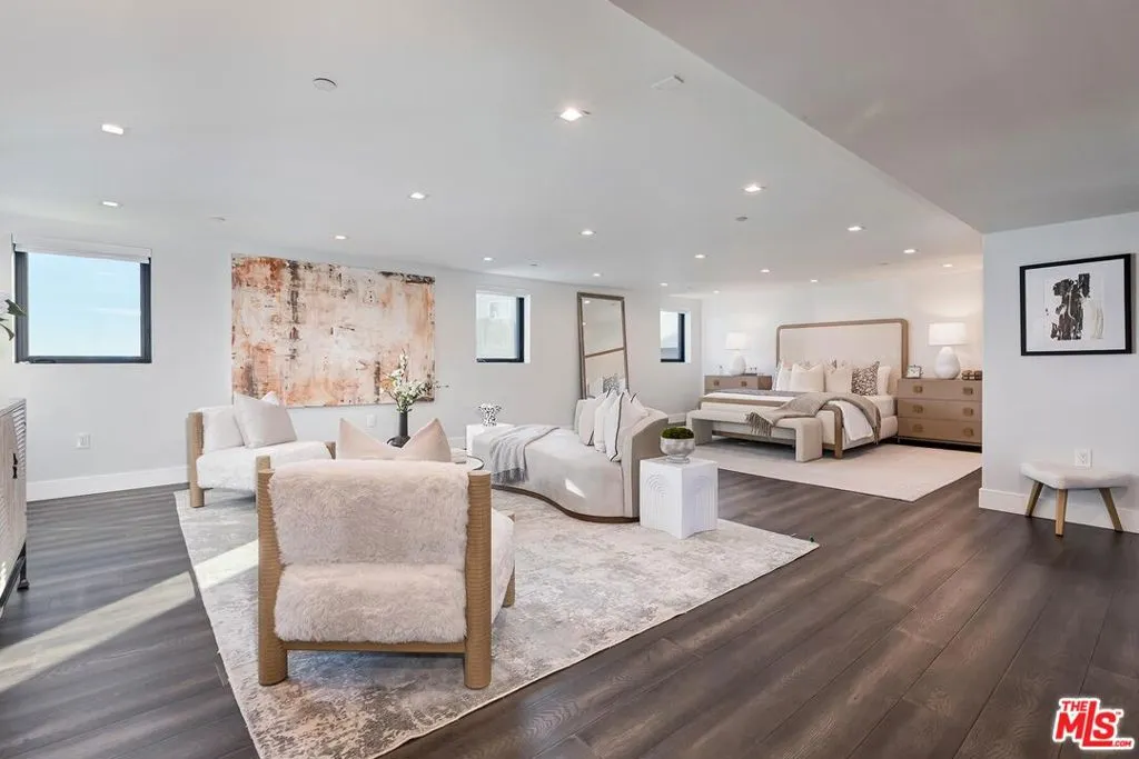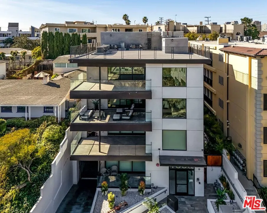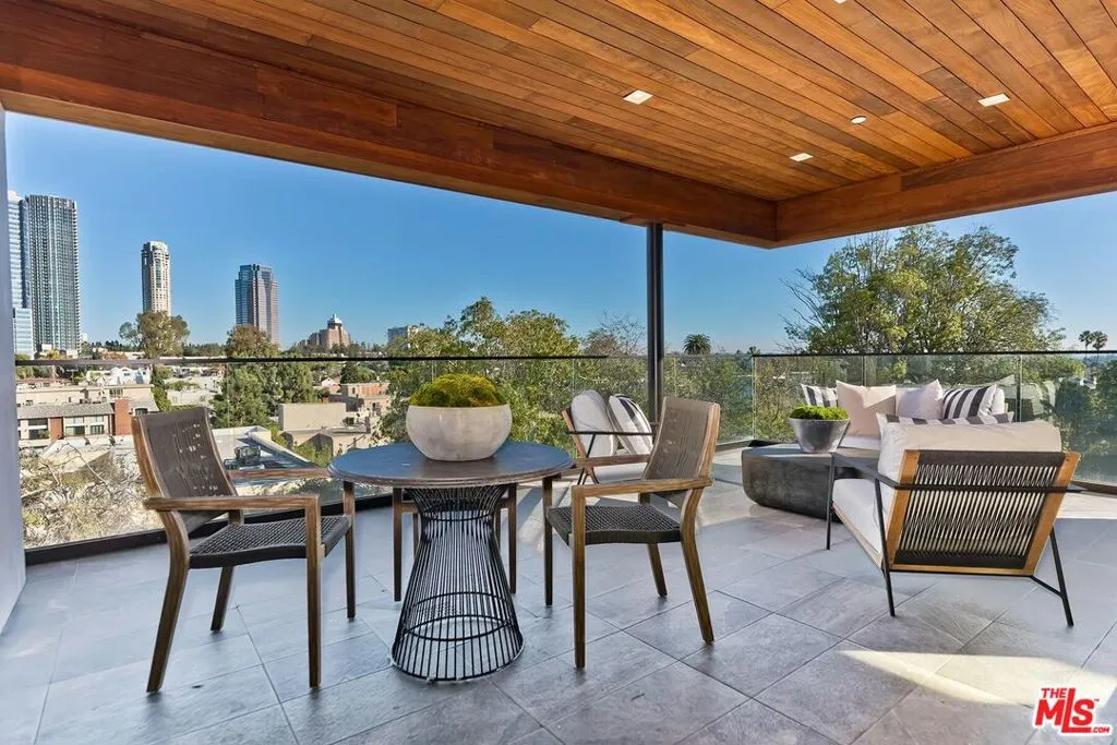 Unparalleled opportunity to experience the pinnacle of luxury Century City living in this two-level penthouse in a newer, exclusive four-unit building. Completed in 2020, this bespoke home bathed in natural light spans the entire top floors, showcasing soaring 16-foot ceilings, a modern aesthetic and the finest finishes throughout. Step directly from your private access elevator into an inviting entry where the expansive open floor plan unfolds on warm hardwood floors, beginning with a dramatic living room perfect for intimate evenings or lively gathering and a versatile bonus space offers the flexibility for a formal dining room or a private home office. Both areas open through floor-to-ceiling glass doors to a spacious balcony with sweeping eastern views toward the Century City skyline and beyond. Just beyond the entertaining areas lies the gourmet kitchen, a dream for both seasoned chefs and enthusiastic home cooks. Appointments include a stainless Wolf dual oven with six-burner stove and built-in microwave, a large side-by-side stainless Sub-Zero refrigerator/freezer, 60-bottle wine storage, sleek quartz counters, upper glass display cabinetry, and an expansive center island with overhead hood and abundant bar seating. The kitchen overlooks the intimate dining area perfect for any occasion from casual breakfasts to festive celebrations. The main level offers a junior primary suite with a luxe ensuite bath, plus two additional family bedrooms each with their own private bath providing comfort and privacy for guests or loved ones. Upstairs, the expansive primary retreat commands the entire top level, featuring enormous dual closets and a spa-inspired bath with a floating dual-sink vanity, freestanding soaking tub, and oversized shower. Ownership of this unit also includes your exclusive-use 1,190-square-foot rooftop deck ideal for sunbathing, entertaining, or simply savoring the limitless views from the mountains to down town and to the ocean. Additional amenities include a private guest powder room, side-by-side laundry, extensive storage, multi-zone HVAC, and the rare convenience of three side-by-side parking spaces. Perfectly situated moments from the chic Century City mall and business center, iconic Beverly Hills shopping and dining, golf at Rancho Park and LACC, and convenient freeway and transit access, this move-in-ready penthouse offers all the best of luxury living without the burdens of traditional homeownership.
