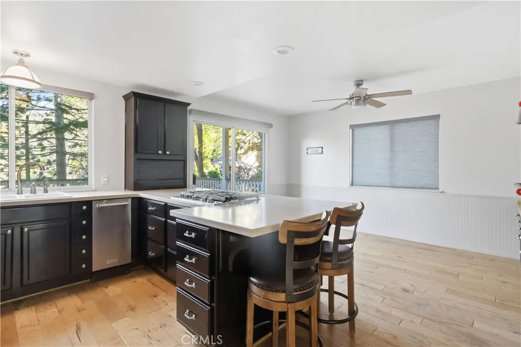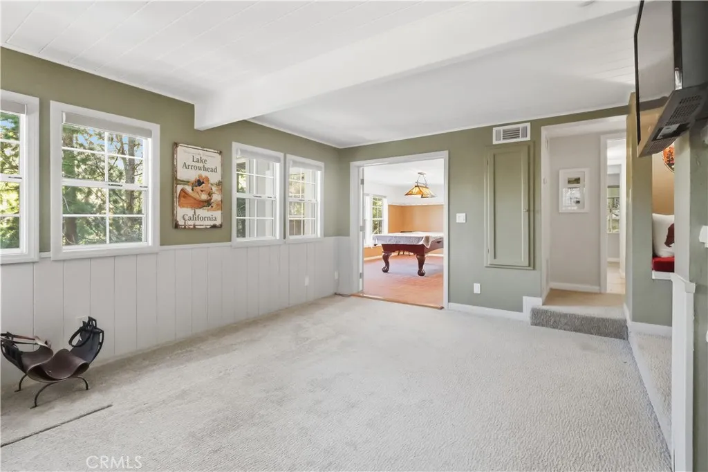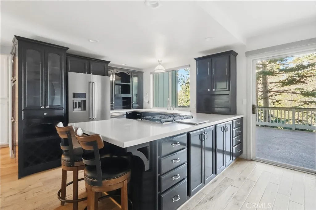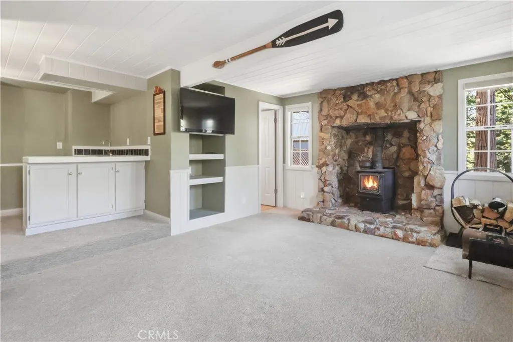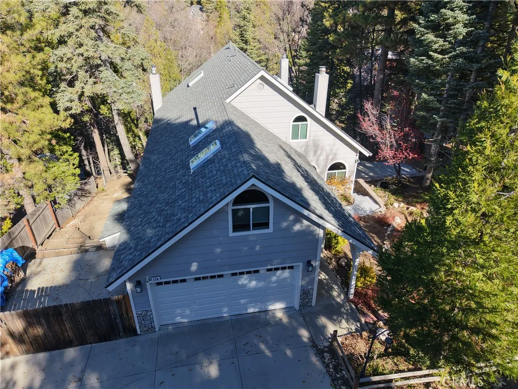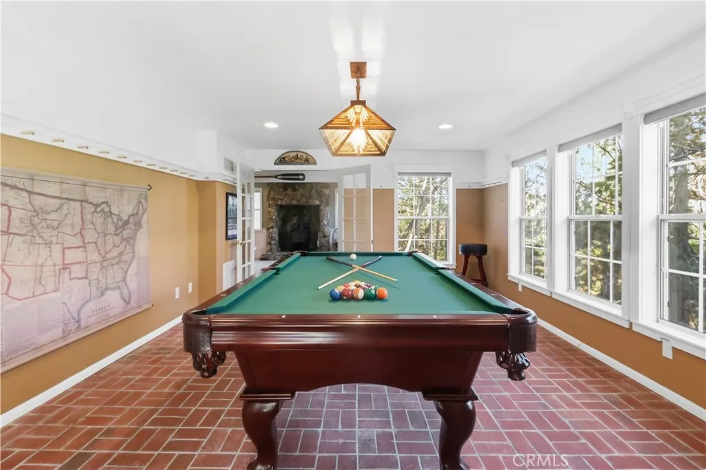 174 Golf Course Road | Lake Arrowhead Set in one of Lake Arrowhead’s most sought-after neighborhoods, this four-bedroom, level-entry home offers a beautiful blend of comfort, charm, and elevated mountain living—just moments from the Lake Arrowhead Country Club and a short drive to the lake. A welcoming approach with tranquil water features sets a serene tone upon arrival. Inside, the main level opens to a light-filled living room anchored by a striking rock fireplace, creating an inviting gathering space. Warm wood floors flow into a country-style kitchen featuring stainless steel appliances, quartz countertops, and classic cabinetry, ideal for everyday living and entertaining. Three bedrooms are conveniently located on the main level. Downstairs, enjoy a spacious den with a wet bar and wood-burning stove, perfect for relaxed evenings or hosting guests. An adjacent bonus game room, complete with a pool table, adds versatility and fun. The home’s crown jewel is the private upstairs primary retreat, featuring an exceptional bonus area enhanced by skylights, flooding the space with natural light—ideal for a sitting room, office, or yoga studio. A cozy fireplace creates warmth and ambiance, while the spa-inspired bathroom with a charming clawfoot tub offers a peaceful sanctuary. Step outside to enjoy beautiful decks off the back of the home and a dedicated patio, thoughtfully designed for outdoor entertaining and mountain relaxation. A backup generator provides added peace of mind and year-round comfort. With level entry, abundant natural light, inviting indoor-outdoor living spaces, and close proximity to golf, lake, and village amenities, this home perfectly captures the Lake Arrowhead lifestyle.