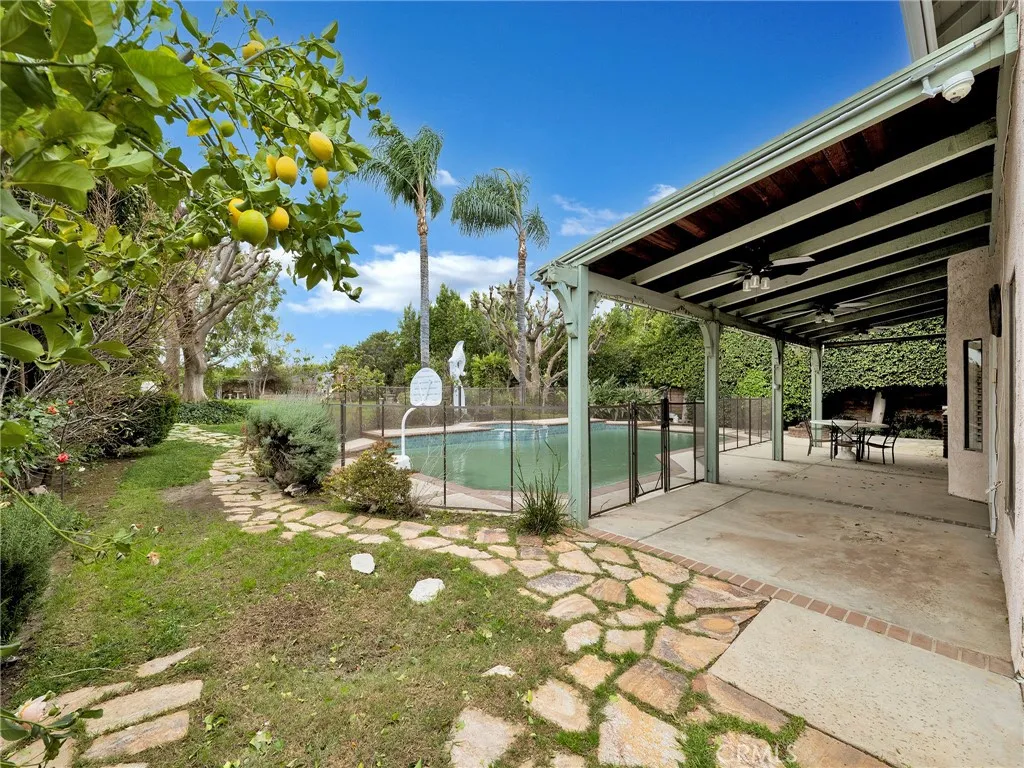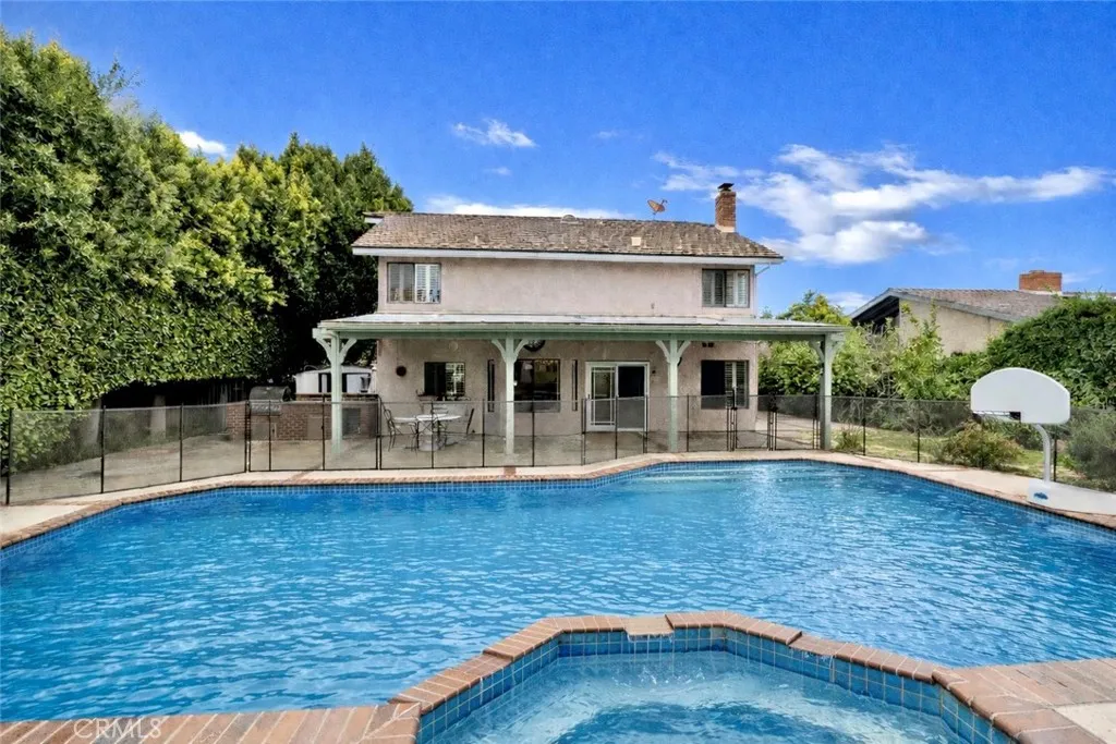 Located on a quiet cul-de-sac in the sought-after Heritage Estates neighborhood of Chatsworth, this 4-bedroom, 3-bath home with an office offers 2,763 sq ft of living space on an expansive 18,000+ sq ft flat lot. Double front doors open to a formal living room featuring vaulted ceilings and a fireplace—an inviting space for entertaining or cozy evenings at home. The kitchen opens to the family room and enjoys views of the expansive backyard with park like grounds including lush landscaping and dozens of fruit trees, providing a wonderful foundation for future updates and personalization. The primary suite serves as a private retreat with a walk-in closet and ensuite bathroom featuring dual vanities, a soaking tub, and a glass-enclosed shower. Three additional generously sized bedrooms, a dedicated office, separate laundry room, and an attached garage offer a flexible and functional floor plan. The nearly half-acre lot is a rare blank slate with endless possibilities to enhance, expand, or reimagine the outdoor space. Enjoy nearby neighborhood parks, mountain hiking and equestrian trails, all just minutes from upscale shopping and dining. Ideally situated within walking distance to prestigious Sierra Canyon School and DNA Academy, the location is truly exceptional. A special home with exceptional potential—come see the possibilities for yourself.