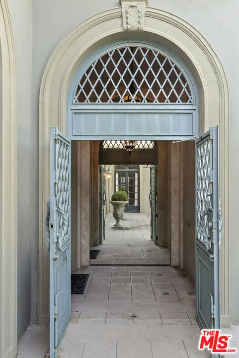 Welcome to The Rexford Estate, where dreams come true. Located in the Beverly Hills flats just around the corner from the legendary Beverly Hills Hotel, you will instantly fall in love with this magical French-style estate with extraordinary curb appeal. Surrounded by mature landscaping, this luxurious manor is privately set behind a grand custom gate, followed by a second gate before you reach the front door. Step through the marble entryway into the grand living room with soaring vaulted ceilings, elegant French doors, gorgeous columns, rich hardwood floors, and a statement fireplace that anchors the room. The formal library exudes classic Beverly Hills style, with custom wood built-ins and exquisite details, while the beautiful dining room glows with a real sense of occasion, great for entertaining. At the heart of the home is a large atrium with a serene water fountain. This breathtaking, one-of-a-kind courtyard features a glass ceiling that fills the room with natural sunlight by day and starlight by night. This estate offers five bedrooms and eight bathrooms, with each bedroom graced by its own en-suite. Additional spaces include a cheerful breakfast room overlooking the atrium with a Quatrefoil fountain, a butler's pantry off the kitchen, and an inspiring office, family or bedroom option that opens to the back terrace through French doors. Downstairs, you will find a spacious laundry room, versatile bonus room, and dedicated storage area. Outside, the enchantment continues with a sparkling pool, expansive yard, and custom-built BBQ area. The three-car garage with alley entrance is complemented by a long driveway that can accommodate a fleet of six or more vehicles. The residence also comes with the peace of mind of a full security and camera system, plus the benefit of having Beverly Hills police and fire departments three blocks away. Built in 1923, the home has been meticulously maintained with love and intention. While it is a stunning showpiece as-is, it also offers room to update with grace. Beyond its beauty and architectural pedigree, Rexford carries a remarkable legacy. It has been in the family with lots of Hollywood television, movie, and radio history for decades. This is a rare opportunity to own a magnificent, inviting and undeniably magical Beverly Hills property. VIRTUAL STAGING.