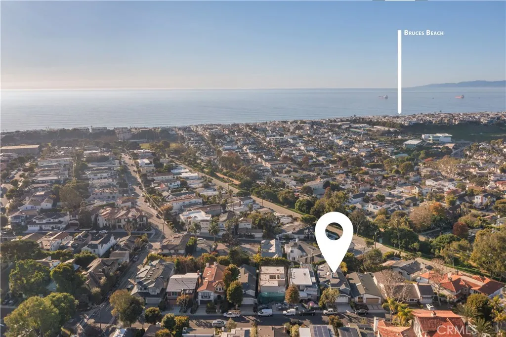 Back on the market after the installation of new carpet in the bedrooms and flooring in the downstairs living room! Easy living and entertaining awaits you in this expansive, split-level, contemporary home in the coveted American Martyrs area within the Manhattan Beach Tree Section. The entry floor features vaulted ceilings throughout the living area, dining room and kitchen. Also on this level, you will find a guest bedroom and a full bathroom. Ascend the stairs to the primary suite, which boasts its own fireplace, a walk-in closet, and an ensuite bathroom with a Jacuzzi tub and shower with multiple shower heads. Downstairs you will find three additional bedrooms, a bathroom, a dedicated laundry room and the second living room with doors that open to the private backyard. At the heart of the backyard is an island, with a built-in BBQ and outdoor refrigerator, that is shaded from the sun by an ample trellis and warmed on cold nights by stoking a fire in the adjacent wood-burning fireplace.