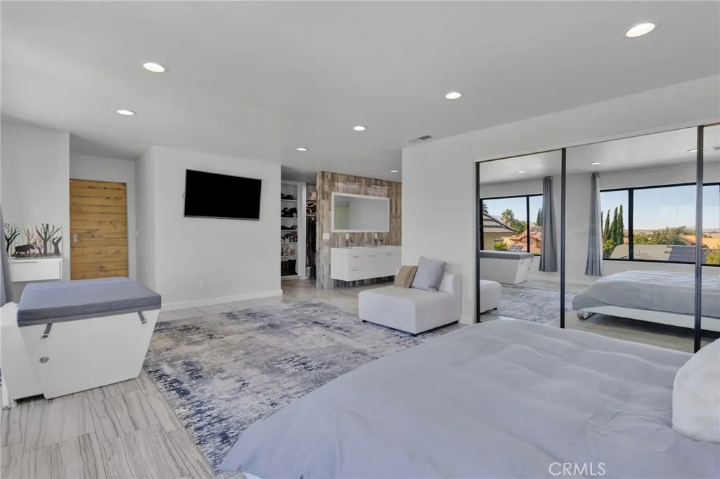 BACK ON MARKET!! At no fault of the seller. Welcome to an extraordinary architectural residence located within the highly desired community of Spring Valley Lake. Set on one of the rare 20,000 sqft half-acre lots, this FOUR-level Mid-Century Modern–inspired home offers a distinctive design and presence rarely found in the High Desert. The property delivers grand luxury curb appeal, with the home set far back from the street for added privacy and comfort, complimented by mature palm trees and a commanding arrival you’ll be proud to showcase. True gated RV & Boat parking—a rare feature within this HOA—along with ample additional parking. THIS IS A 3RD BEDROOM (with a possible 4th bedroom, could easily convert the loft area into a full living quarters), 2 full bath, 2 half bath residence has been completely remodeled, blending industrial-modern design with warm natural elements. High ceilings, oversized ceiling fans, the appearance of architectural concrete pillars, and rich all natural wood beams & finishes. The designer kitchen features commercial-grade built-in appliances, including a 48-inch built-in refrigerator, convection oven, microwave, wine refrigerator, custom range hood, and commercial-style sink and faucet. All natural-wood breakfast and dining nook is seamlessly integrated into the countertops. While a wood-burning stove anchors the family room. The entire third level offers an expansive great room with 2 grand windows and dual access doors to a private balcony with valley views, wet bar, fireplace, half bathroom—ideal for a home office, game room, formal dining area, or optional bedroom. This is one of the home's most versatile and inviting spaces. The fourth level is exclusively dedicated to the primary retreat, featuring 2 grand windows giving panoramic views of the valley, walk-in closet, and spa-inspired bath with oversized walk-in shower, rain and multi-head shower system, and oversized separate jetted soaking tub. The ground level includes two additional bedrooms and a spa-style bathroom with deep soaking tub, rain and dual shower heads, and Bluetooth speakers for an elevated experience. Additional highlights include a tankless water heater, freshly painted deck, and fully landscaped with natural grass and mature pomegranate and pistachio trees—no artificial turf. Offering architectural distinction, modern luxury, and rare amenities, this exceptional residence truly stands apart. Schedule your private showing today.
