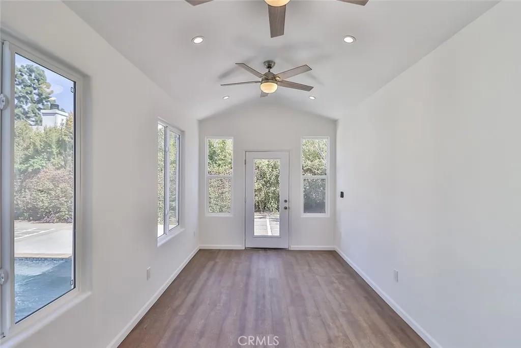 PRIME Sherman Oaks location, South of the Blvd, completely remodeled + available FOR LEASE! Amenities include: main house has 4BR + 3.5BA, open floorplan + approx 3000 SQF; guest space offers additional 1BR + 1/2 bath - great for studio, office space + more (approx 250 SQF); primary residence has living room w/fireplace; dining area; upgraded kitchen w/center island, sparkling countertops + newer stainless steel appliances (refrigerator, stove/oven, dishwasher + microwave all included); newer wood laminate + ceramic tile flooring throughout; central heat + air; recessed lighting + dual pane windows; stacked washer + dryer hook-ups; backyard w/pool; gardener + pool service provided; 2 car garage + driveway for parking; pets considered w/owners approval.