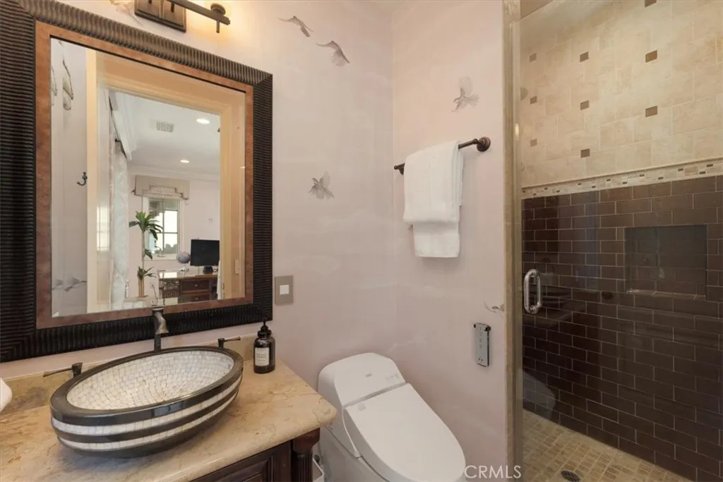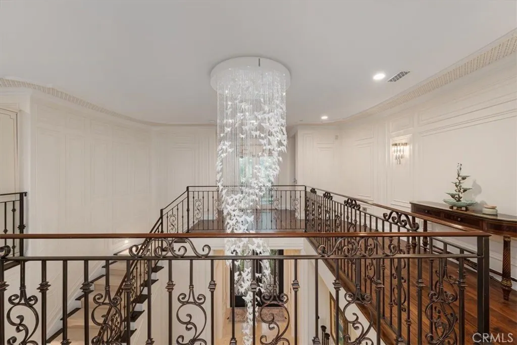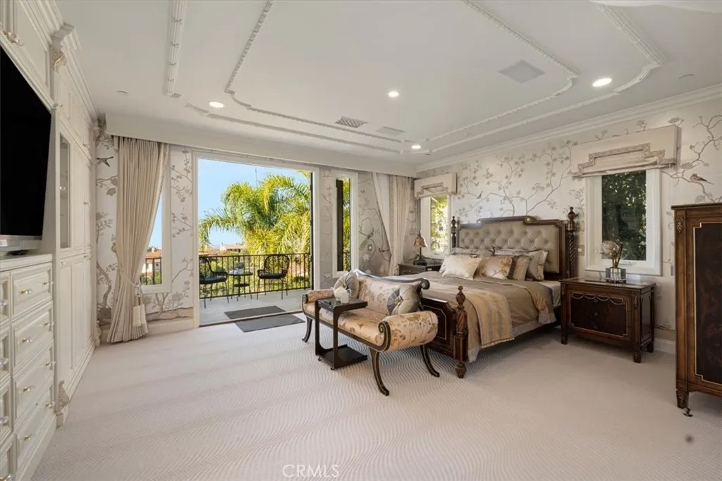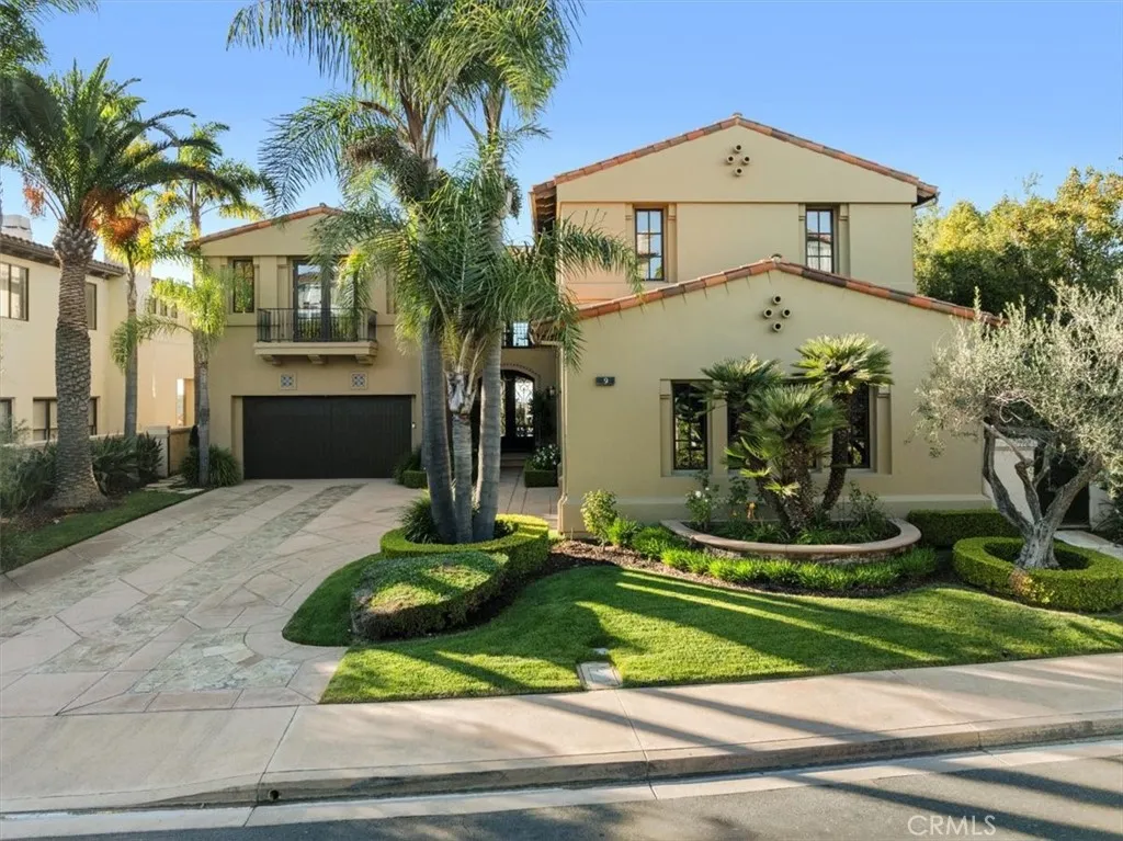 On a tranquil cul-de-sac in the exclusive, guard-gated community of Pelican Hill in Newport Coast, California, a 6,200-square-foot estate sits on a scenic quarter-acre lot. Its freshly painted exterior, towering palm trees, and manicured landscaping set the stage for this 6-bedroom, 6.5-bath Spanish-style residence. Panoramic views of the Pacific Ocean and spectacular sunsets are visible from many vantage points. Glass-inlaid double doors open to a grand foyer, where soaring ceilings, exquisite and artful design create a refined ambiance. Handcrafted Spanish natural stone fireplaces anchor key entertaining areas. The main level features formal living and dining areas that capture coastal views. An inviting family room leads to a sun-drenched breakfast nook and an exceptional chef-inspired kitchen. Equipped with premium Viking/JennAir appliances and oversized Spanish natural stone island. Downstairs provides a guest ensuite and powder room, while upstairs features four comfortable and stylish retreats, along with an office adorned with bookcases and a custom double-sided desk that can easily be converted back into a fifth bedroom. The primary suite featuring a personal sitting area with a fireplace, an ocean-view terrace, Spanish natural marble double vanities, a bathing tub, shower, and a smart toilet. Carefully selected high-end curtains and wallpaper imported from England, as well as luxurious carpets. The junior suite shares the same design philosophy, but with different decorations. Its ensuite also features a double vanity, a brand-new tub and shower. From its British-sourced wallpaper and high-end curtains to the color and pattern of the carpet, all are meticulously arranged. A generous walk-in closet and an integrated dressing room complete this exquisite retreat. Two additional rooms, each with a different design style, provide comfortable space for relaxation. In the backyard, resort-style amenities await, a swimming pool and spa, a California room with an outdoor kitchen including a gas stove and a sink meticulously designed for outdoor entertaining. Highlights include a high-end chandelier, smart sliding mortise locks, pop-up sockets, recessed lighting with dimmers, and a separate laundry room, customized curtains, wallpaper, moldings, and wall panels throughout the home. Attached 4-car garage completes its practical appeal. Discover the pinnacle of coastal living, where every detail is meticulously crafted for those with discerning taste!