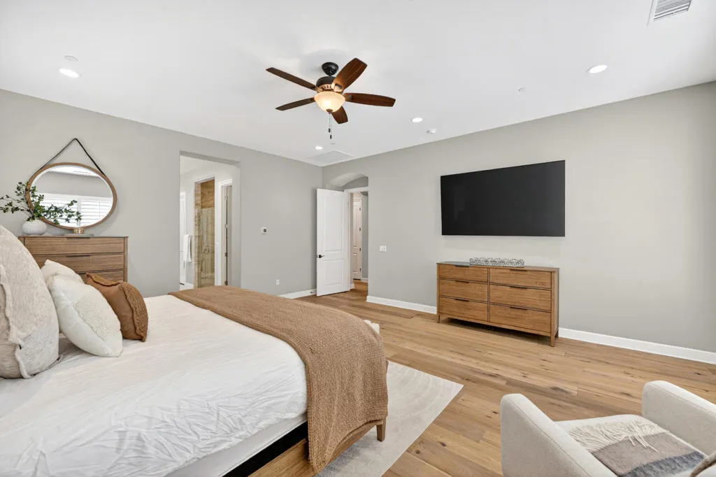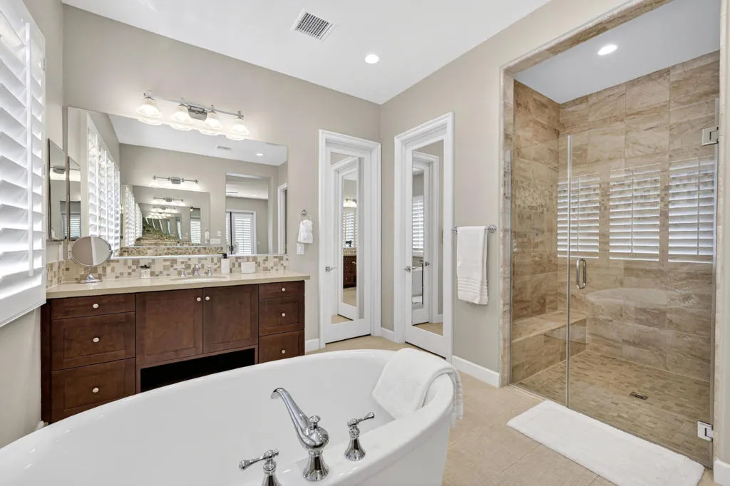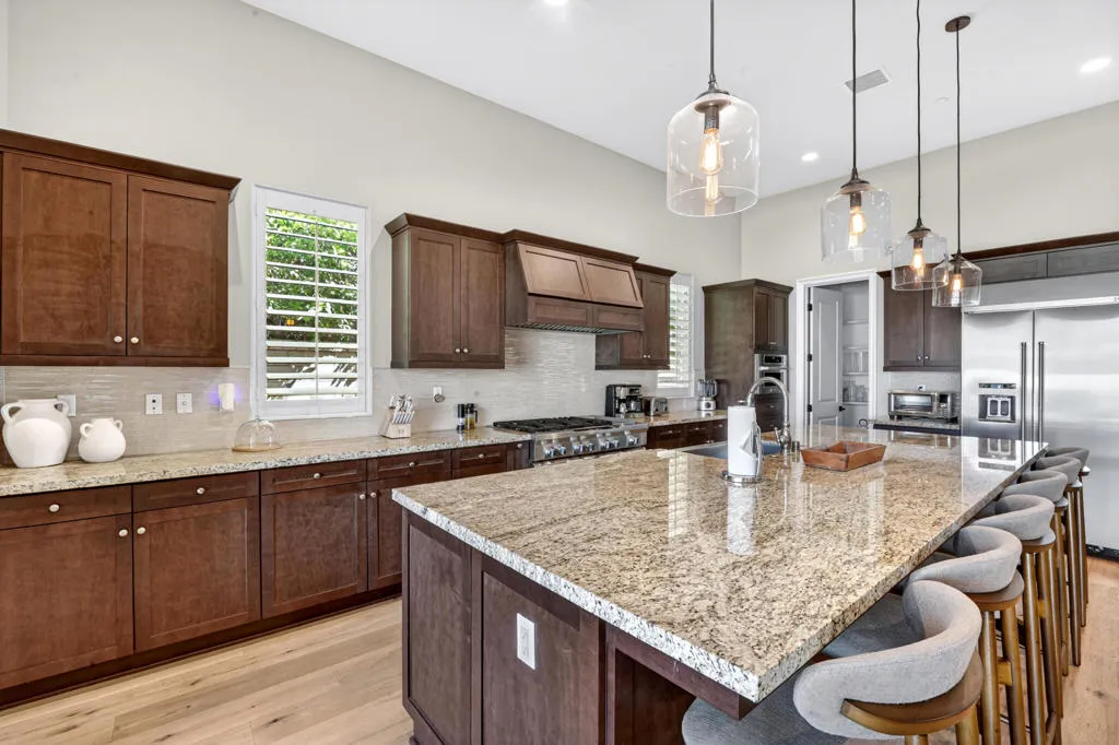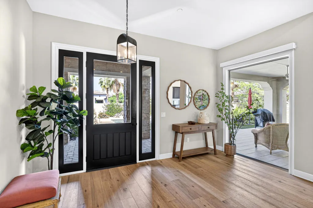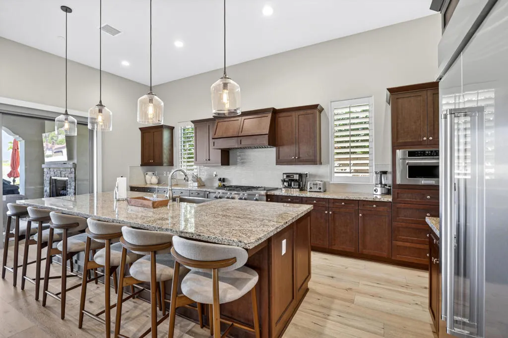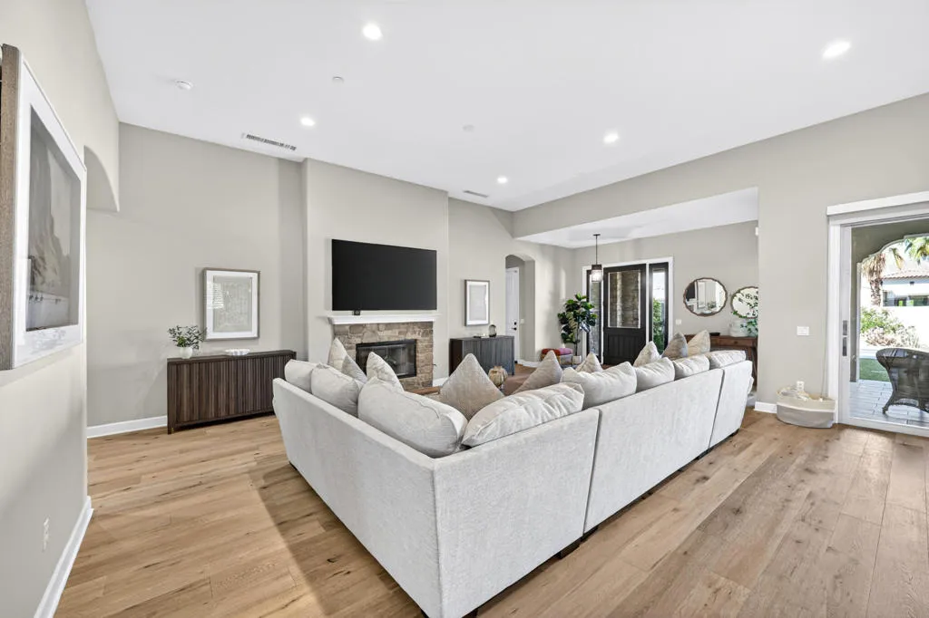 Discover elevated desert living in this exceptional 2019-built residence offering approximately 3,180 square feet of refined living space on a generous 10,890 square foot lot, located inside the coveted Greg Norman Gate of PGA West. Thoughtfully crafted with sophisticated finishes throughout, the home showcases a chef's kitchen, honey-honed wood flooring, and a flowing, open layout designed for effortless entertaining. Each of the four spacious bedrooms features its own private en-suite, while the primary retreat delivers a true spa-like sanctuary. Expansive sliding glass doors form the heart of the home, seamlessly blending interior comfort with the stunning desert surroundings. Step outside to a resort-style oasis highlighted by sweeping mountain panoramas, vibrant sunset views, and an inviting patio complete with a fireplace, TV, and luxurious seating--ideal for relaxing or hosting guests. Turnkey and impeccably furnished, this residence is perfectly positioned just minutes from world-class golf, Old Town La Quinta's dining and shopping, and the iconic Coachella and Stagecoach festival grounds.