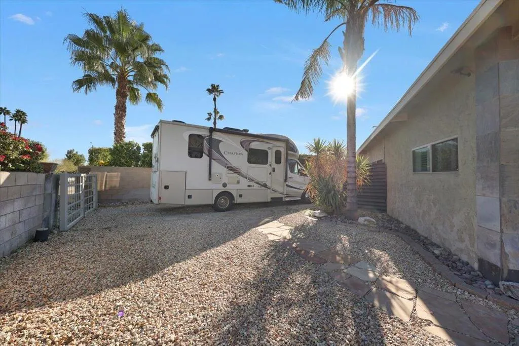 $55k REDUCTION!!! Expanded Mid Century home with lots of potential on a large corner lot, Fenced and Gated, over 2,100 sq ft containing 3 bedrooms and a large office that can easily be a 4th bedroom. French doors across the rear of the living to rear yard with pool. The galley kitchen has a serving area to the living area, and access to the garage. The front of the house has panoramic mountain views and also RV parking 25'x9' Fully owned solar on the roof producing approx 99.9% of the power supply. Attached garage includes a large utility room,