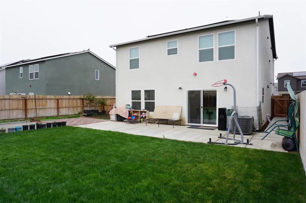 A perfect blend of comfort and convenience in this lovely 3/4 bed, 2.5 bath, two-story home. Home comes with a loft that has been converted to 4th bed room. This home boasts a spacious, open floor plan, inviting living and dining area offering plenty of natural light. Perfect for those family gatherings and entertaining. This contemporary home comes standard with Whirlpool stainless steel appliances (dishwasher, electric stove, microwave), quartz countertops, generous sized kitchen island shaker-styler cabinetry, LVP flooring, solar system panels ( leased with sun strong Inc, Tesla Powerwall. The home is equipped with modern energy features, including solar power ensuring efficiency and sustainability. Enjoy the comfort of laminate flooring throughout and the ambiance of a family room that seamlessly connects with the kitchen. Ready to move in, with concreted patio, side walk and an extended drive way. Backyard comes with professionally landscaped. For convenience, the laundry room is located upstairs inside. Additional amenities include a garden window, a walk-in closet, two-car garage. The property falls within the Los Banos Unified School District. No HOA -