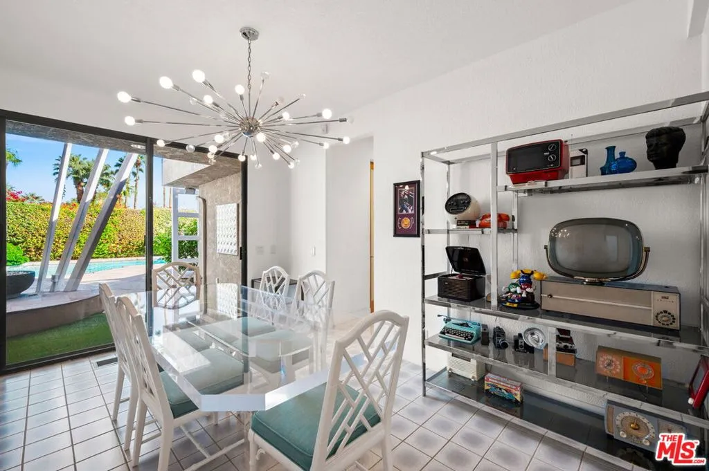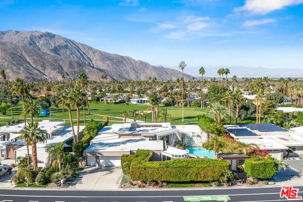 Welcome to 1650 E Murray Canyon Drive, historically known as The Waterfall House, a true contemporary architectural gem nestled within the coveted Indian Canyons neighborhood of South Palm Springs. This custom-designed home, built in 1978 by celebrated local architect James Cioffi, exudes timeless elegance and modern sophistication. Step through the private courtyard to behold the entrance's custom steelwork, introducing this striking home with its pool, cascading waterfall, spa, lounge seating area, and BBQ. The expansive open living areas seamlessly connect indoor and outdoor spaces, bathed in natural light from all directions. The interior structural lines beautifully complement the home's architectural imprint, creating a harmonious ambiance and optimal privacy. At 4,393 square feet, with three bedrooms including a luxurious en-suite primary and four bathrooms, this home is ideal for multi-generational living or entertaining guests. Dine al fresco under the covered back patio and enjoy sunsets over the 11th Tee of the North Course of the iconic Indian Canyon Golf Resort, a unique location surrounded by spectacular desert mountains. Key features include a putting green, floor-to-ceiling stone fireplace, two walk-in primary closets, a chef's kitchen with granite countertops and stainless steel appliances, a den, clerestory windows throughout, a sunken living room and immense bar, and a two-car plus golf cart garage, with golf courses, hiking trails, and horse stables nearby. This desert retreat offers the finest in Southern California living.