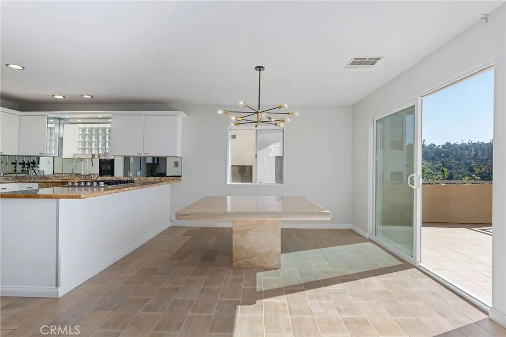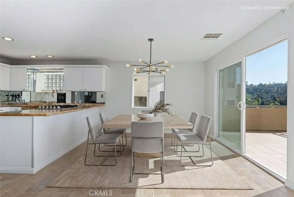 This stunning Studio City entertainer’s residence offers some of the most breathtaking panoramic views in the area. Guests are welcomed through an elevated foyer that overlooks a formal dining room and opens into a light-filled living room featuring clerestory windows. The chef’s kitchen is thoughtfully appointed with granite countertops, a generous breakfast bar, a six-burner range, built-in wine storage, and stainless steel appliances, including a newer refrigerator. Upstairs, the expansive primary suite is a true retreat, showcasing serene treetop views from its private balcony, a cozy fireplace, an oversized walk-in closet, and a spa-inspired bath complete with a step-up soaking tub, large skylight, glass-enclosed corner shower, and dual vanity. An oversized guest suite with its own balcony and en-suite bath serves beautifully as a second primary or in-law suite, while two additional bedrooms provide comfortable accommodations for family or guests. The tri-level floor plan includes a separate side entrance to one bedroom with an adjacent three-quarter bath—ideal for older teenagers, long-term guests, or a private executive home office. Additional features include a dedicated laundry room, ample storage, and an attached two-car garage. Ideally located near Studio City’s premier dining, shopping, entertainment, and major Hollywood studios, this exceptional home offers both privacy and convenience in one of the area’s most desirable neighborhoods.