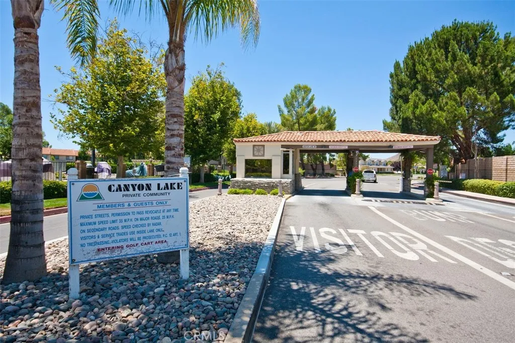 Solar owned with the sale of this beautiful golf course home. See this spacious 3-bedroom, 2-bath home with 1825 sq ft. This family home features a welcoming living room that flows into a large great room, along with both a formal dining area and a casual dining space off the kitchen—perfect for entertaining and everyday living. The upgraded kitchen boasts Corian countertops, a tile backsplash, and ample cabinetry with self-closing drawers. Both bathrooms have been tastefully upgraded, and vinyl flooring runs throughout the home. A cozy wood-burning tiled fireplace adds warmth and charm to the living area. Home offers a large dining room /game room.. Additional highlights include a two-car garage and a nicely enclosed backyard with vinyl fencing. This backyard overlooks a beautiful view of the golf course. In the backyard, Peach, pink lemon, and blood orange trees harvest delicious fruit. Canyon Lake offers resort-style amenities centered around its private lake, including pool and spa, boating, fishing, water sports, plus an 18-hole golf course, equestrian center, tennis/pickleball courts, numerous parks with beaches & playgrounds, restaurants (Lodge, Country Club), and a lively Activity Center with classes, dances, billiards, and a fitness center, all within a 24/7 guard-gated, golf-cart-friendly community.