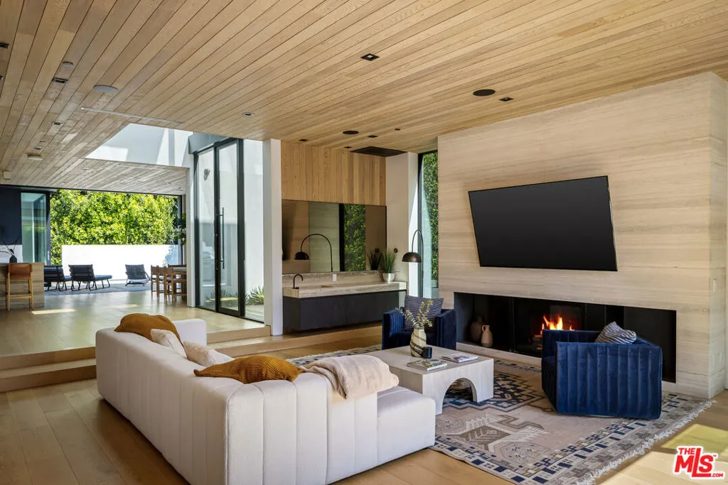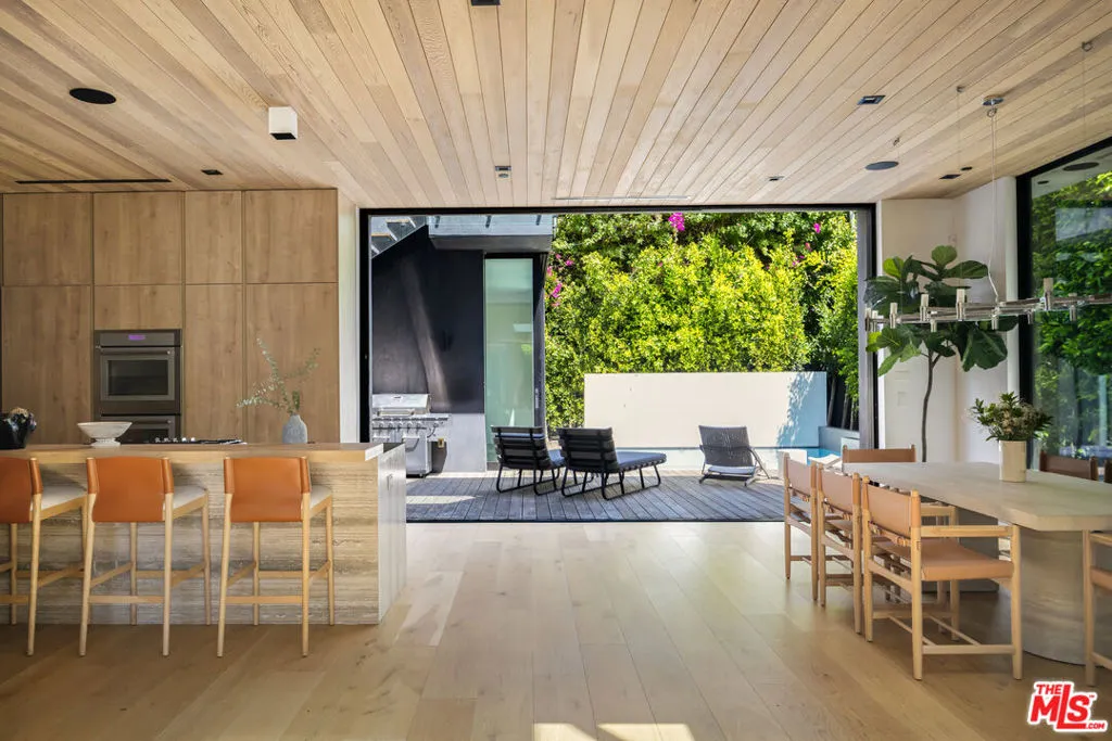 An architecturally striking modern compound set on an expansive private lot in prime Beverly Grove, offered fully furnished and designed for elevated indoor-outdoor living. This resort-style contemporary smart home blends warmth and sophistication through an open floor plan, rich oak flooring, and expansive floor-to-ceiling glass that fills the interiors with natural light. The main level is thoughtfully composed for both daily living and entertaining, featuring a fire-sided living area, formal dining space, and a chef's kitchen outfitted with premium stainless-steel appliancesseamlessly opening to curated outdoor entertaining areas. Gated and private, the backyard retreat includes a custom pool and spa, along with multiple lounge spaces ideal for relaxed gatherings or refined entertaining. Floating wood staircases lead to the upper level, where the primary suite is a serene sanctuary featuring a fireplace, floor-to-ceiling windows, a private patio, a walk-in closet, and a spa-like primary bathroom. Two additional en-suite bedrooms and a dedicated laundry room continue the home's cohesive and refined design. Crowning the residence is a spectacular rooftop deck with panoramic city views, complete with dining and lounge areas and a wet bar, creating an exceptional setting for entertaining. Ideally located moments from The Grove, Beverly Center, world-class dining, shopping, and nightlife, with easy access to the Sunset Strip and major freeways, this one-of-a-kind offering delivers the ultimate blend of architectural sophistication, lifestyle appeal, and effortless luxury living in Beverly Grove.