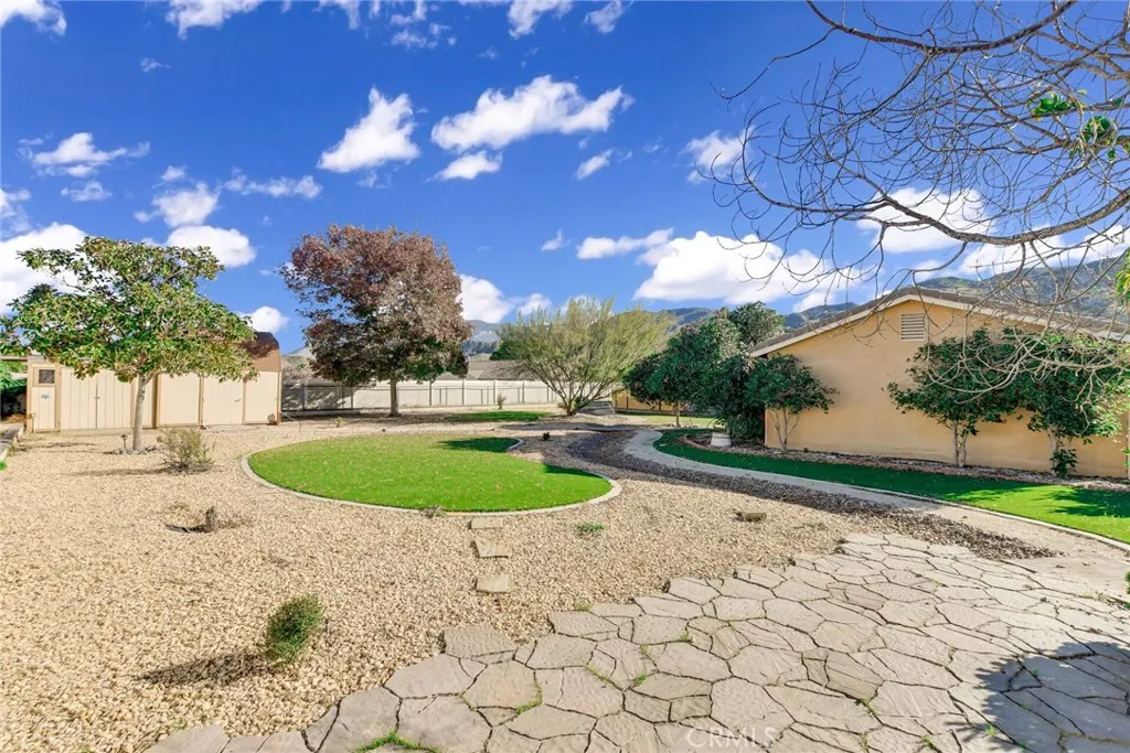 Back on the market, pending cancellation. You have to see this three bedroom, two bathroom home with a two bedroom, one bathroom casita. Yes, that is five bedrooms and three bathrooms total. Unique for sure! Come see the open floor plan and large backyard, including two storage sheds and mature landscaping. The low maintenance yard is covered with artificial turf, gravel and concrete walkways. Use the casita as an office, guest house or for your extended family. It is located just steps away from the main house. Hard surface flooring, carpet in bedrooms. Clean white tile counters, a handy laundry room and space for a small table in the eat-in kitchen. There is a formal dining room, carpeted, updated hall bathroom in the main house. Primary suite has a walk-in closet and roomy ensuite. Fenced-in patio just outside. Quiet neighborhood with lots of space. Just below the mountains where you can visit Idyllwild and other mountain communities. You will love the area and the home. Consider making this your new home.