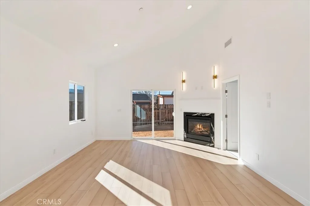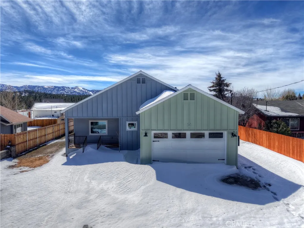 Brand new home with views of Bear Mountain & Snow Summit ski slopes! This house is ready and waiting to become your home ~ It has everything you would want in a new home ~ When you walk in you will love the 18 ft. ceilings over the open floor plan and gas fireplace with quartz surround in the living room ~ The kitchen features real quartzite countertops with a quartzite waterfall island, solid oak cabinets and new appliances ~ In the master bedroom you have 18 ft. ceilings, a gas fireplace with matching quartz surround and views of the ski slopes ~ The master bathroom has porcelain tile floors, step in shower with dual showerheads, a separate soaking tub, dual sinks and light up mirrors ~ Bedrooms 2 & 3 are both en suite with their own full bathrooms and 9 ft. ceilings ~ There is even a 1/2 bathroom off the living room for guests ~ The large laundry room also has a sink ~ The redwood front deck is ideal for relaxing with your morning cup of coffee and taking in your views of Gold Mountain ~ In the 440 sf. ft. 2 car garage you will find 12 ft. high ceilings, EV charging and your tankless water heater with recirculating line (no waiting for hot water) ~ The 3.2kW Solar System with 8 Talesun Panels and Tesla 7.6kW Standalone Inverter is paid for with warranties that can be transferred to the new owner ~ The house is wired for Wifi and has a Wifi thermostat for the forced air heating and air conditioning ~ They have even wired Ring camera outlets for you ~ On the right hand side of the house you have RV parking with a cleanout installed ~ The left hand side of the house gives you room to park your boat and any other toys ~ This has all the bells and whistles and is ready for you to make it your own!