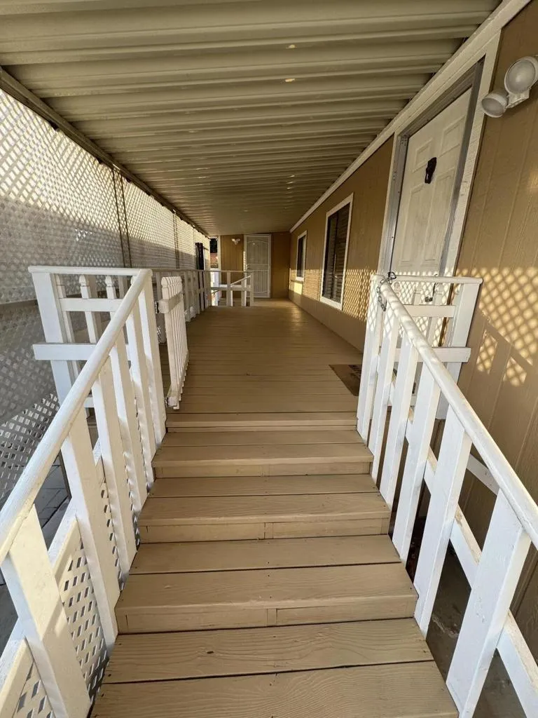 REDUCED PRICE!! RANCHO CASITAS 55+ Gated Community HOA only $180/MO one of the lowest in the Valley where YOU OWN THE LAND!!This home has so many features! Step into modern conveniences. You will not believe this is a Mobile Home! Vaulted ceilings, lots of natural light in the main living area. Skylight over the Kitchen Island. Open concept Kitchen with pass though bar allows for gatherings to be together in the large living space while allowing the chef to be a part of the gathering. The remodeled and upgraded kitchen and built in bar area in Dining has Beautiful Quartz counters, custom cabinetry with self closing drawers and doors. All cabinets have built in drawers never will you have to reach to the back of the cabinet again! Beautiful pet and water proof Pergo Flooring throughout the main living space. Down the hall you'll find a cozy furnished Guest Bedroom with a large reach in closet and plush carpeting. The hall bath has been upgraded with Roman Travertine shower walls and backsplash with a Solid Surface one piece vanity. Continuing down the hall we come to the Primary Bedroom Spacious with a walk in closet. A custom Barn Door leads in to the Primary Bath, where you'll find a spacious linen closet. Quartz vanity, Roman travertine vessel sinks each with its own tall decorative chrome faucet. Safety was on the home owners mind when the shower was remodeled to a low step in shower with safety glass enclosure. Travertine walls, built in shelves and decorative sliced river rock floor. From the primary bedroom you'll find a cute permitted addition for a nice office or craft/sewing room with a roomy second walk in closet! Mobile Homes don't usually have a back door this one does!! It leads to the spacious front porch. There you will find the back steps that lead you to the expansive no maintenance back yard! Perfect for entertaining! Fenced in to keep you pet safe and pet friendly artificial turf for your furry friend. Two large storage sheds. Shaded and private.This is a MUST SEE!!